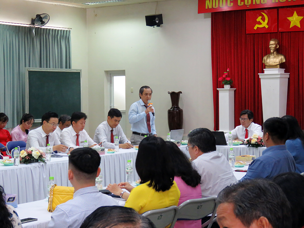 Mở đầu buổi họp, thầy Trần Văn Hiếu – Chủ tịch Hội đồng Trường đã có lời phát biểu chúc Tết đến toàn thể CB - GV - NV nhà trường với mong muốn một năm mới thuận buồm, xuôi gió và “Lộc phát – Bình an”. Tiếp theo là phần Báo cáo Sơ kết các hoạt động giảng dạy, chuyên môn - kết quả thực hiện nhiệm vụ ở Học kỳ 1 của thầy cô trong Ban Giám hiệu. Trước những thành tựu đạt được, tập thể Hội đồng sư phạm nhà trường không chủ quan, duy ý chí mà xem đó như một động lực để tiếp tục phấn đấu, không ngừng đầu tư chuyên môn, nâng cao chất lượng giảng dạy, thể hiện tinh thần trách nhiệm và sự đoàn kết quyết tâm hoàn thành tốt nhiệm vụ năm học ở Học kỳ 2.
