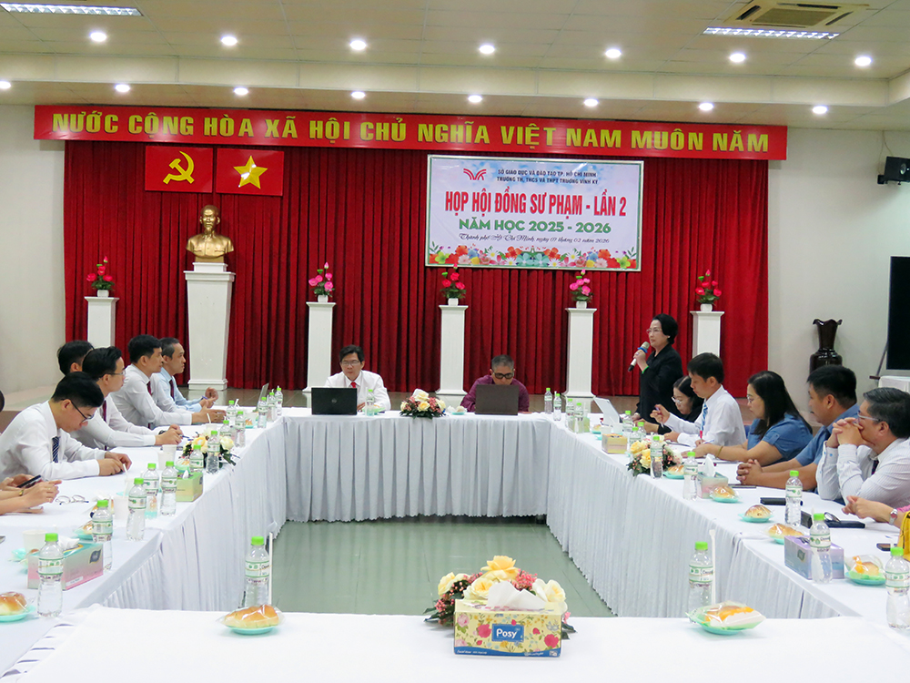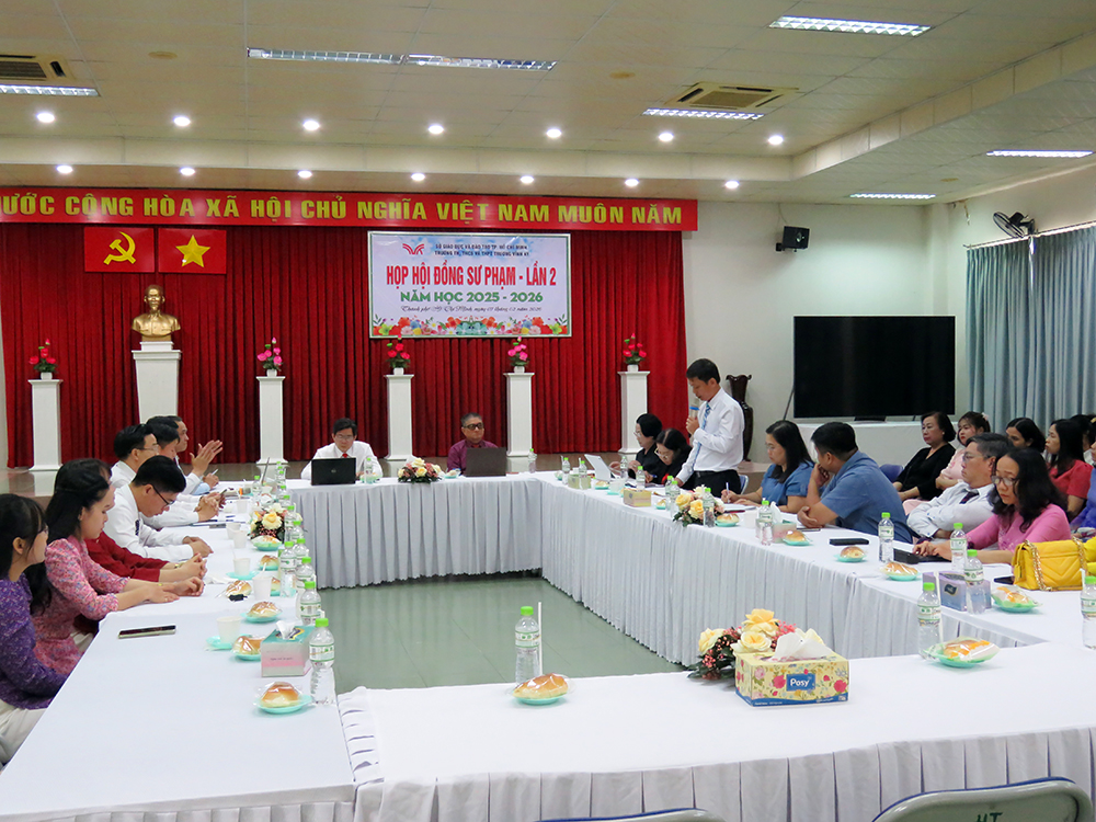 Sau Lễ Sơ kết Học kỳ 1, năm học 2025 - 2026, phiên họp Hội đồng Sư phạm được tổ chức vào lúc 09 giờ 45 thứ Bảy, 07 tháng 02 năm 2026 tại cơ sở Trịnh Đình Trọng nhằm sơ kết đánh giá kết quả thực hiện nhiệm vụ năm học trong Học kỳ vừa qua, chỉ ra những tồn tại, hạn chế và nguyên nhân khắc phục đồng thời triển khai các kế hoạch chuyên môn trong thời gian tới ở Học kỳ 2.