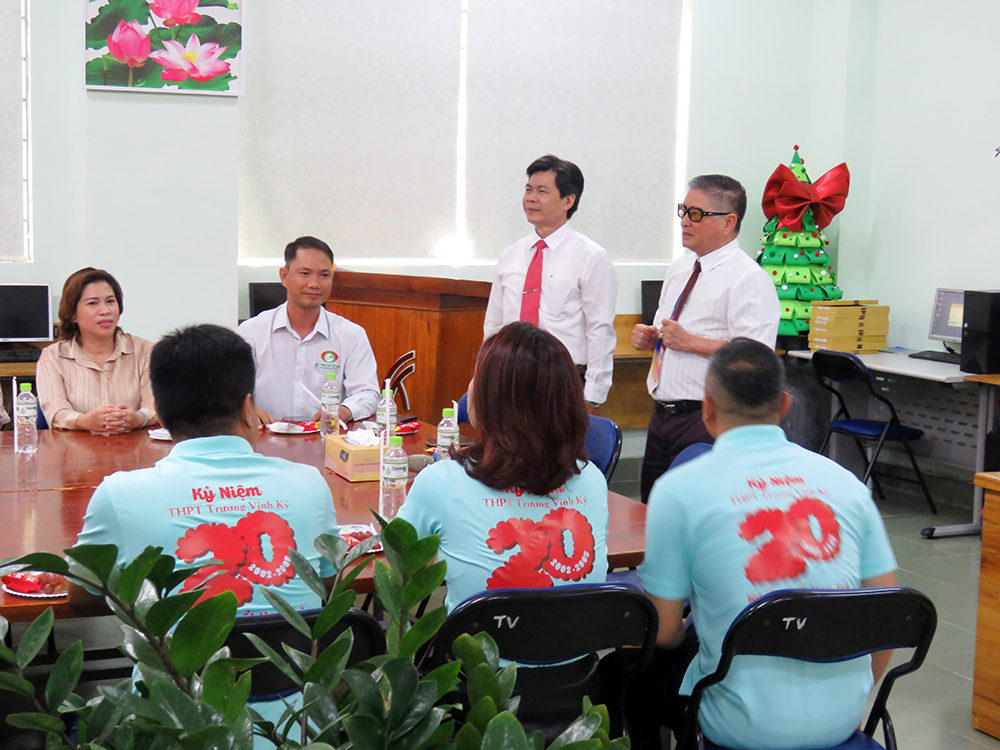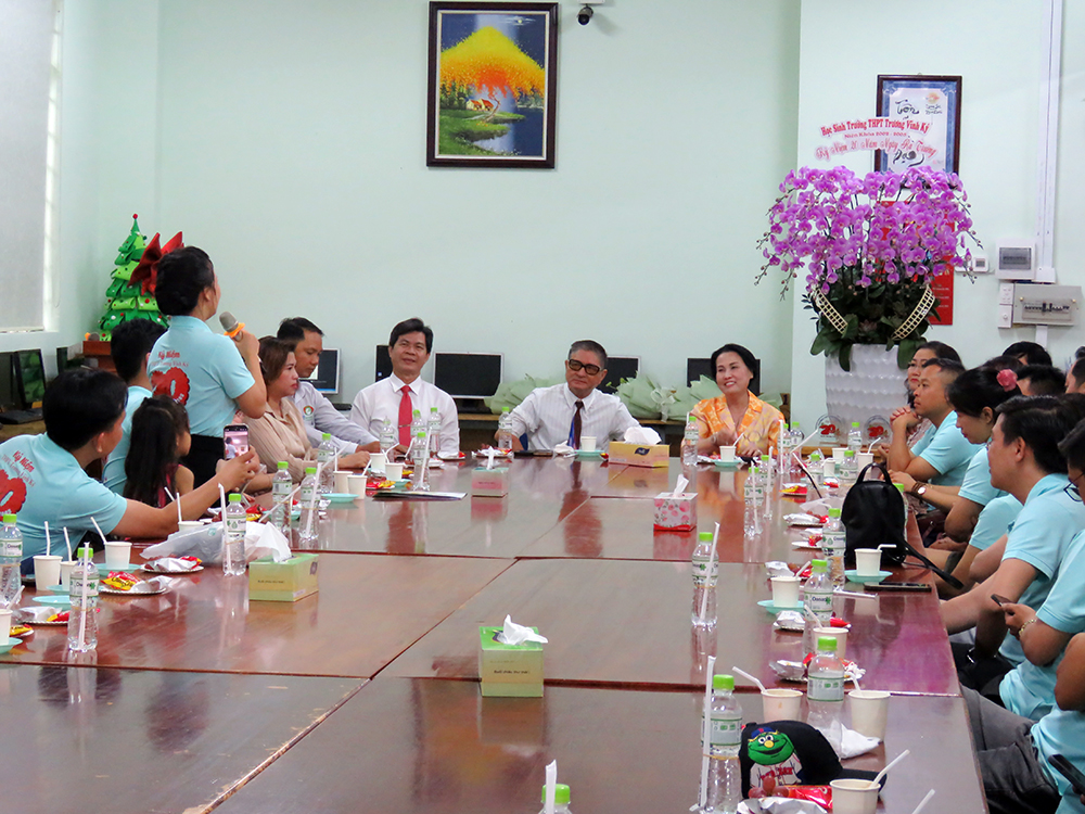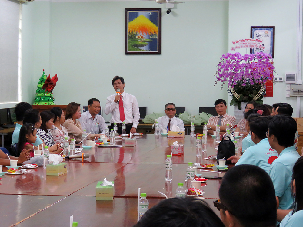 Đáp lại tấm chân tình thơm thảo ấy của các em, lời chia sẻ xúc động mà cũng đầy tự hào của thầy Trần Văn Hiếu - Chủ tịch Hội đồng Trường, niềm vui của thầy Hiệu trưởng Phan Văn Thanh cùng với những tâm tình của Ban Đại diện Cha mẹ học sinh trường Trương Vĩnh ký đã khiến cho buổi họp mặt trong khán phòng thêm ấm cúng, thân thương và gần gũi.