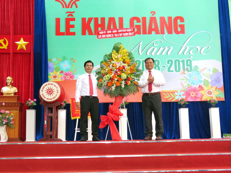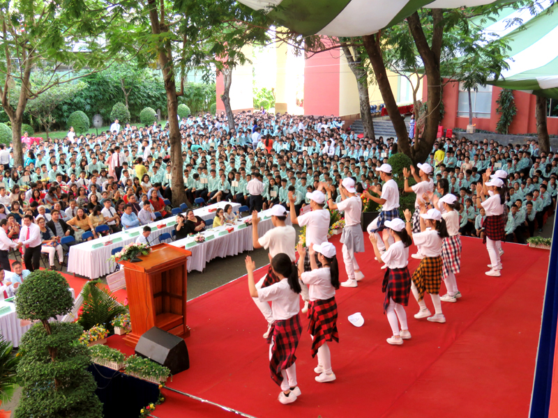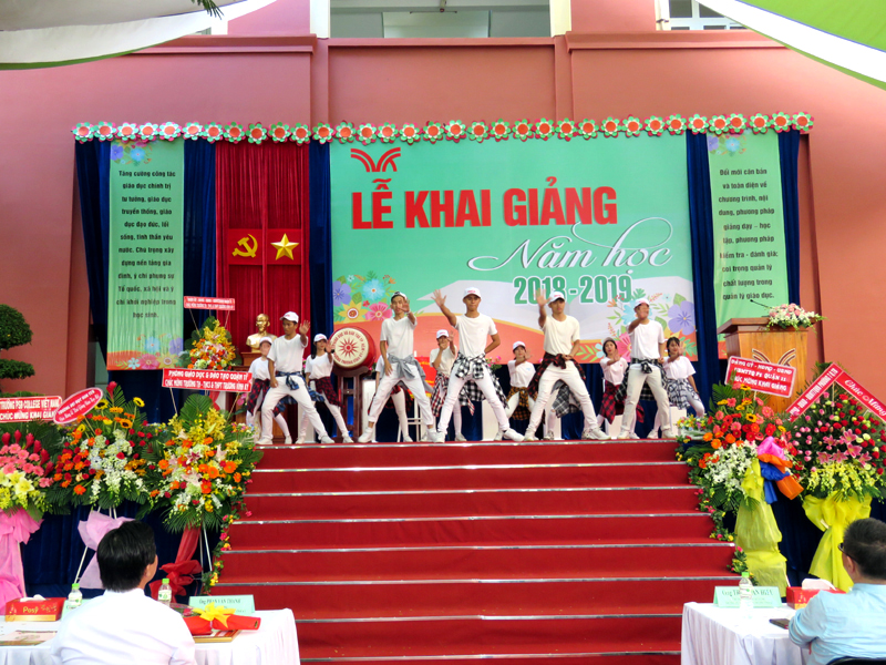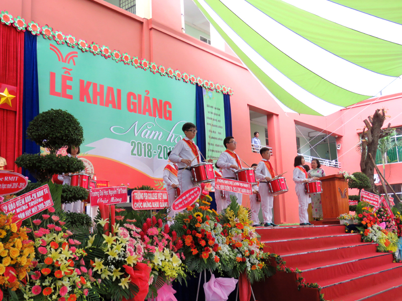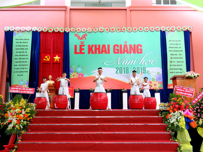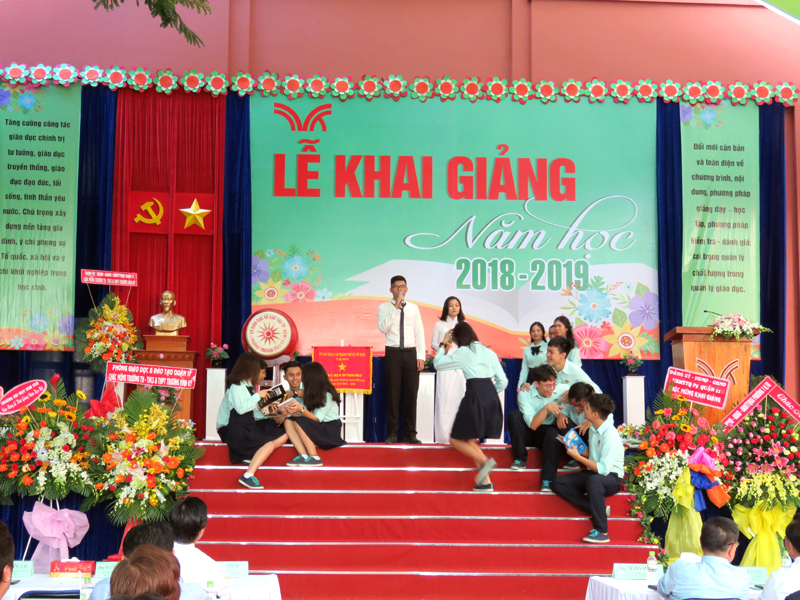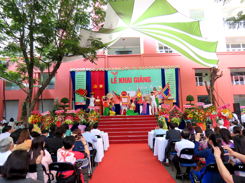 Sau phần đọc thư của Chủ Tịch Nước CHXHCNVN gửi toàn thể giáo viên và học sinh nhân ngày khai trương là diễn văn khai giảng và đánh trống khai trường. Tiếng trống mừng năm học mới vang lên cũng là tiếng trống đón chào các em học sinh khối lớp 6 và lớp10 trong những ngày đầu cấp học. Những lời phát biểu chỉ đạo của đại diện Lãnh đạo cấp trên, của cha mẹ học sinh đã tiếp thêm niềm tin và sự phấn đấu cho thầy cô trong Hội đồng sư phạm nhà trường.