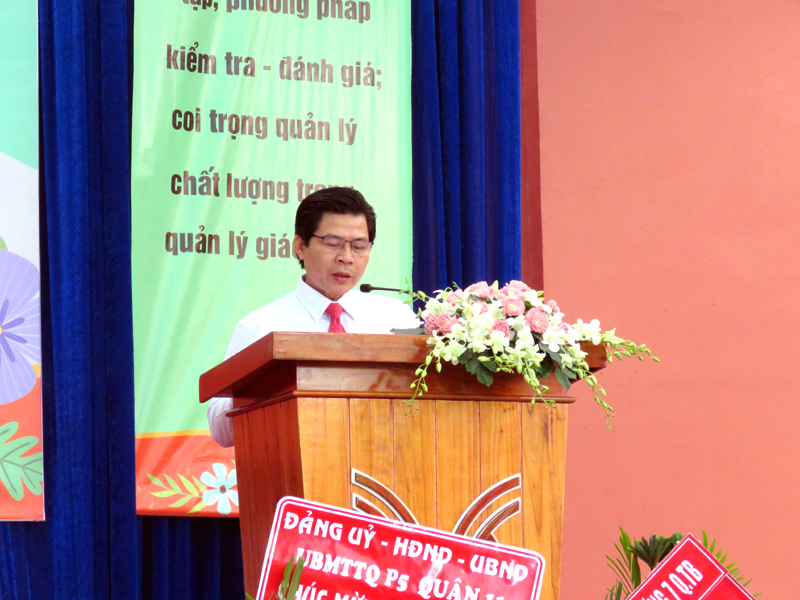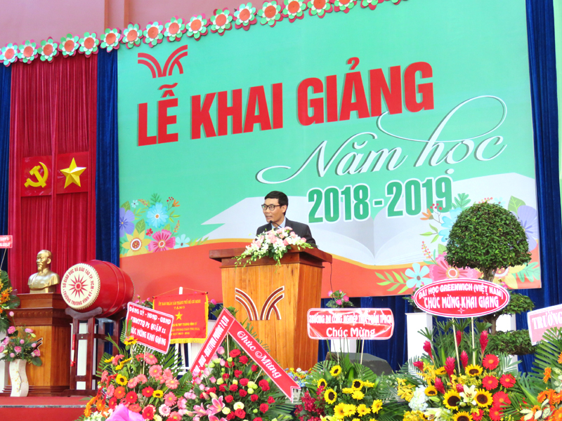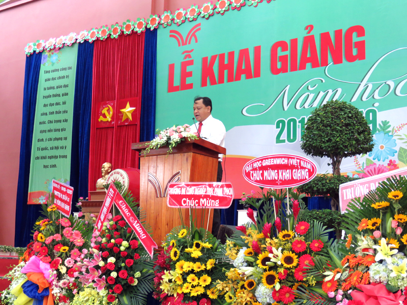 Thầy Phan Văn Thanh - Hiệu trưởng nhà trường đọc diễn văn ngày Khai giảng.