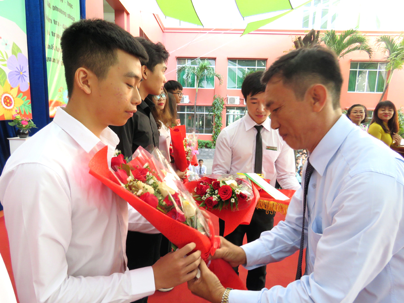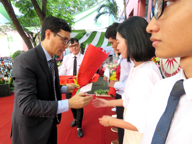 Phần phát biều của học sinh - đại diện hơn 3000 học sinh trường Trương Vĩnh Ký cũng chính là lời hứa quyết tâm hoàn thành tốt nhiệm vụ năm học của toàn thể các em học sinh. Buổi Lễ kết thúc với phần khen thưởng các em học sinh đạt điểm cao trong kỳ thi THPT quốc gia năm học 2018.