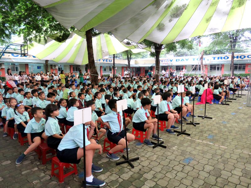 Trong buổi Lễ là tiết mục chào đón 119 em học sinh vào lớp 1 tại trường. Buổi Lễ được tổ chức trang trọng nhẹ nhàng, sâu sắc, ý nghĩa với không khí vui tươi, phấn khởi;