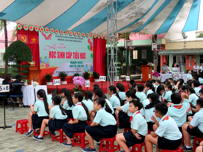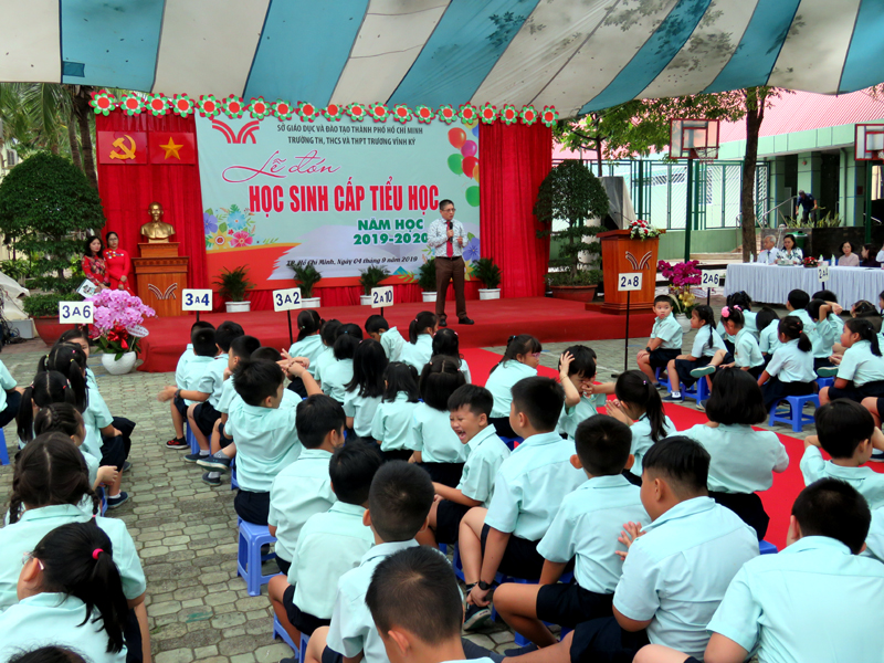 Chào đón học sinh khối lớp 1 và chào mừng tất cả học sinh cấp tiểu học trường Trương Vĩnh Ký nhân dịp năm học mới 2019-2020; Triển khai các nhiệm vụ trong tâm giáo dục của ngành và chiến lược phát triển của nhà trường trong năm học 2019-2020; Lồng ghép nội dung hưởng ứng và phát động Tháng An toàn giao thông năm 2019 vào chương trình Lễ;