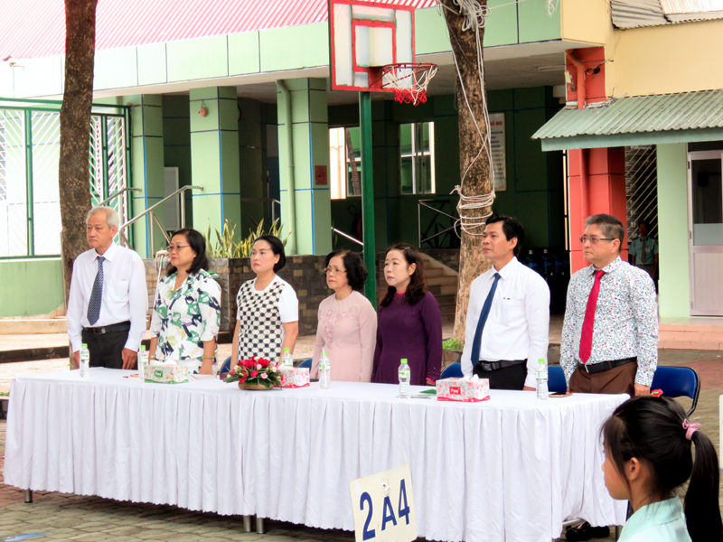 Tham dự buổi Lễ có Ban Lãnh đạo nhà trường, Ban đại diện CMHS, Giáo viên bộ môn và toàn thể học sinh khối Tiểu học.