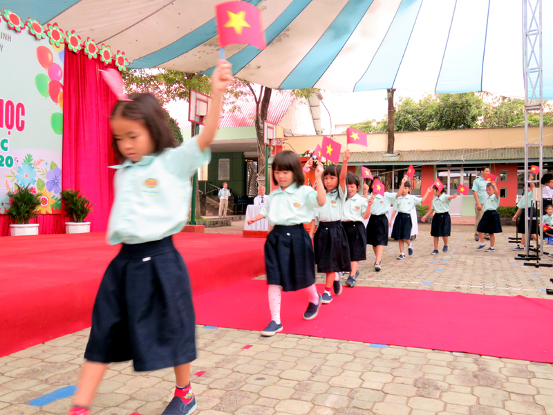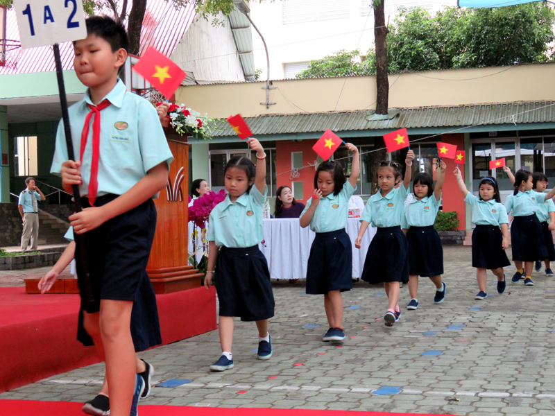 Học sinh khối lớp 1 chào năm học mới