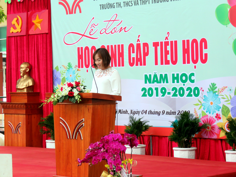 Bà Hồ Diễm Mai - Đại diện cho PHHS toàn trường phát biểu.