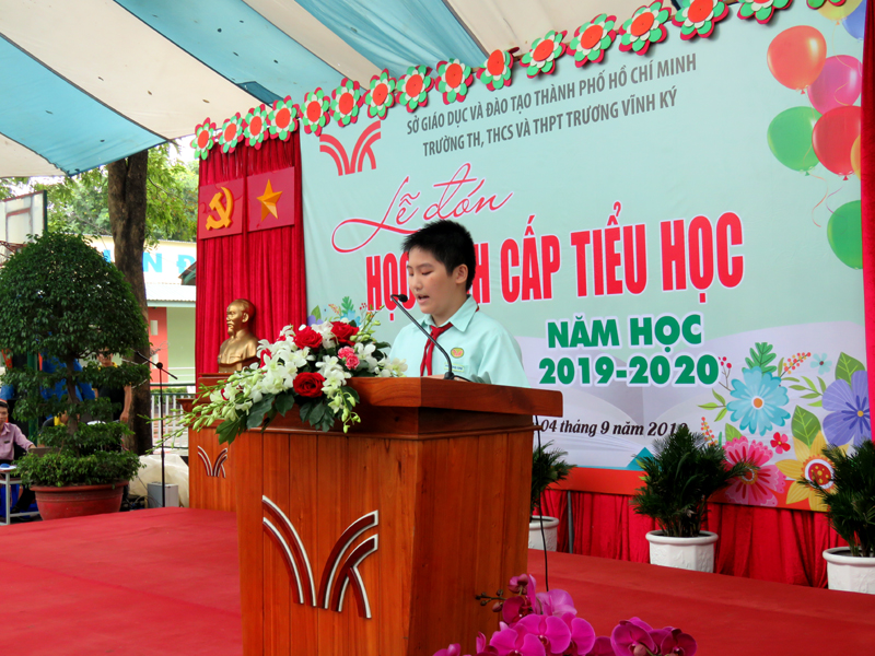 Em Dương Minh Phi Long lớp 5A6 - Đại diện học sinh phát biều