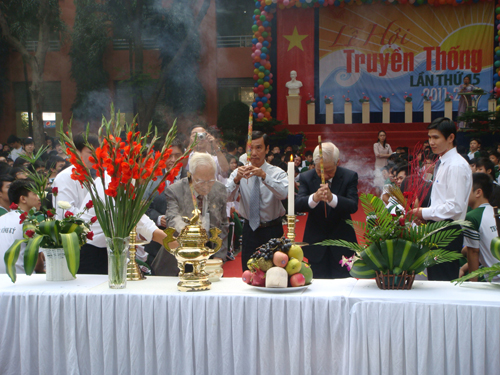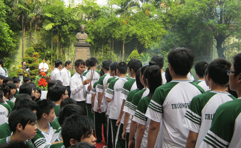 Đông đảo học sinh thắp hương tại khu lưu niệm nhà bác học trong khuôn viên Trường Trương Vĩnh Ký