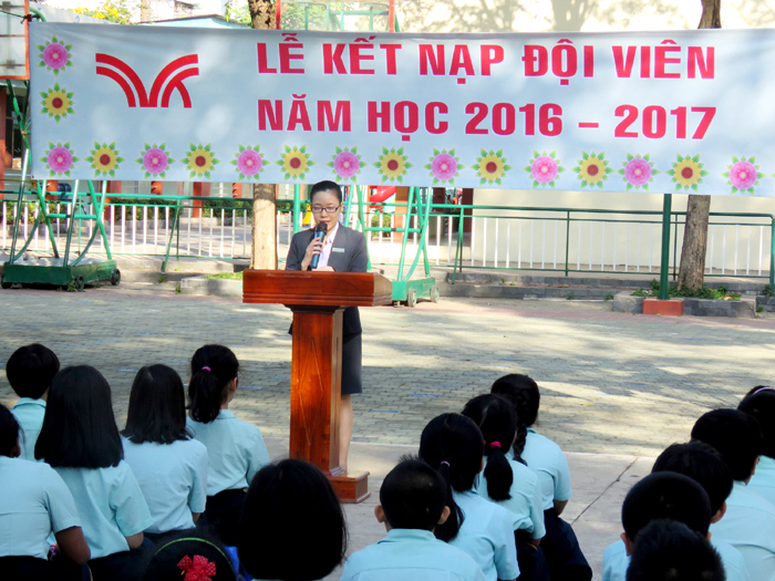 Tham dự buổi Lễ có thầy Phan Văn Thanh – Hiệu trưởng nhà trường, cô Lê Bình Phương Mai – Phụ trách chung khối tiểu học, Nguyễn Thị Châu Lư – Tổng phụ trách đội và các thầy cô là giáo viên chủ nhiệm.