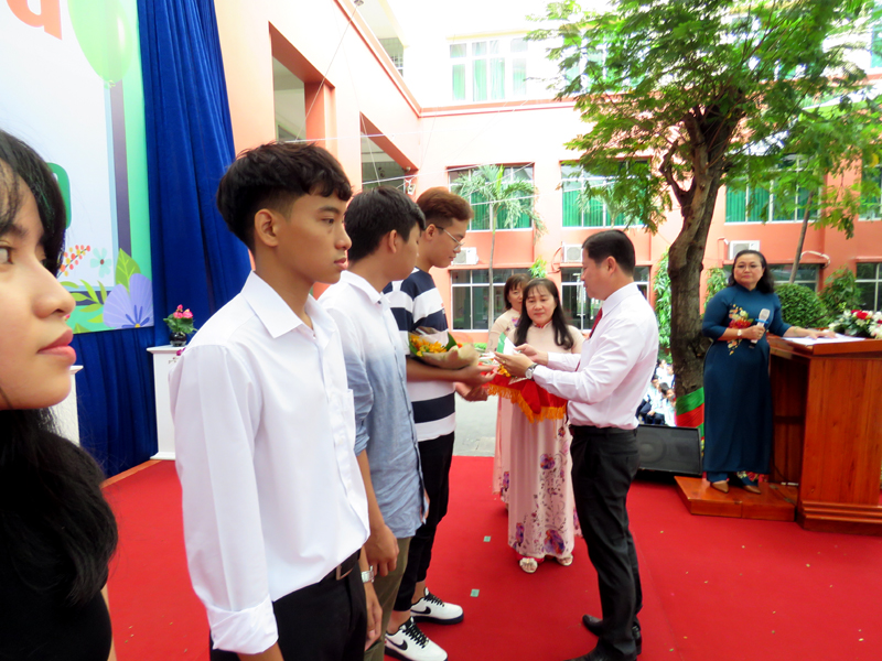 Phần phát biểu của học sinh - đại diện hơn 3.300 học sinh trường Trương Vĩnh Ký cũng chính là lời hứa quyết tâm hoàn thành tốt nhiệm vụ năm học của toàn thể các em học sinh. Buổi Lễ kết thúc với phần khen thưởng các em học sinh đạt điểm cao trong kỳ thi THPT quốc gia năm học 2019.