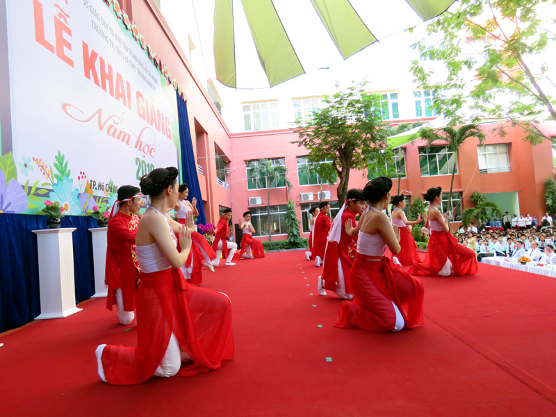 Sau phần đọc thư của Chủ tịch nước CHXHCNVN gửi toàn thể giáo viên và học sinh nhân ngày khai trường là Diễn văn khai giảng và đánh trống khai trường. Tiếng trống mừng năm học mới vang lên cũng là tiếng trống đón chào các em học sinh khối lớp 6 và lớp10 trong những ngày đầu cấp học. Những lời phát biểu chỉ đạo của đại diện Lãnh đạo cấp trên, của cha mẹ học sinh đã tiếp thêm niềm tin và sự phấn đấu cho thầy cô trong Hội đồng sư phạm nhà trường.