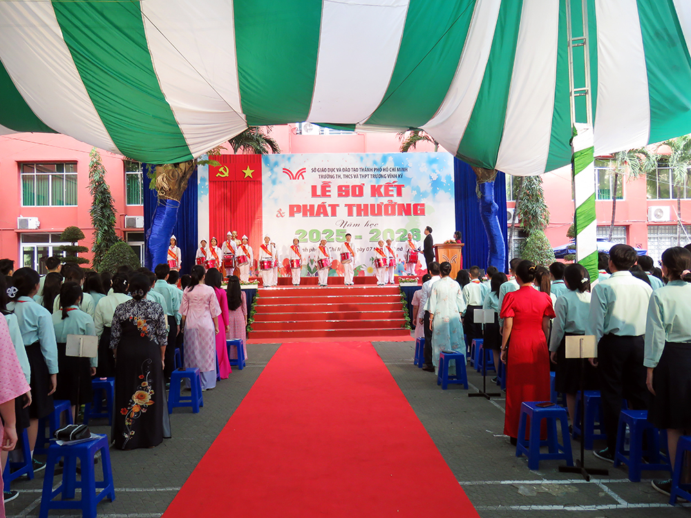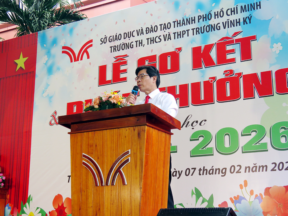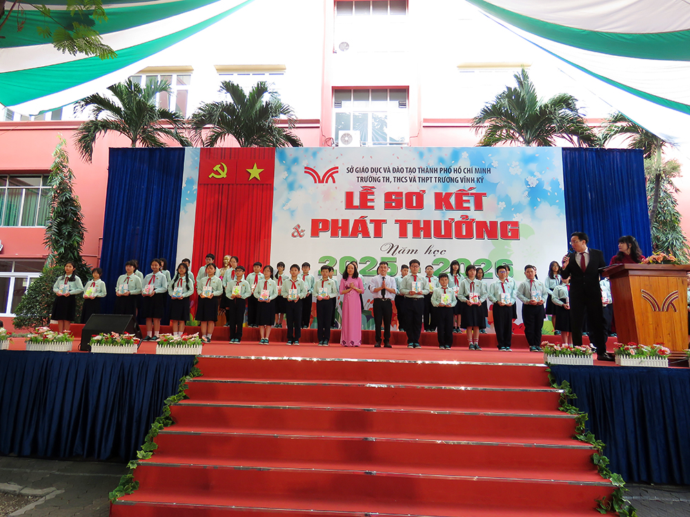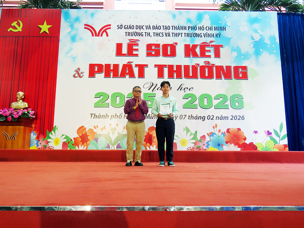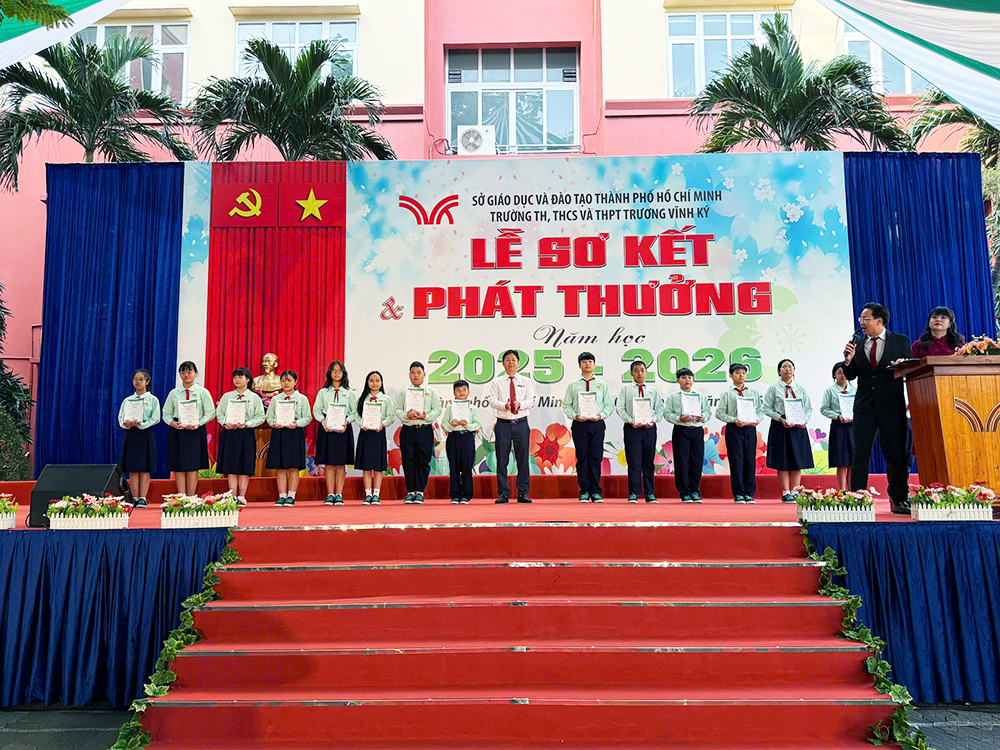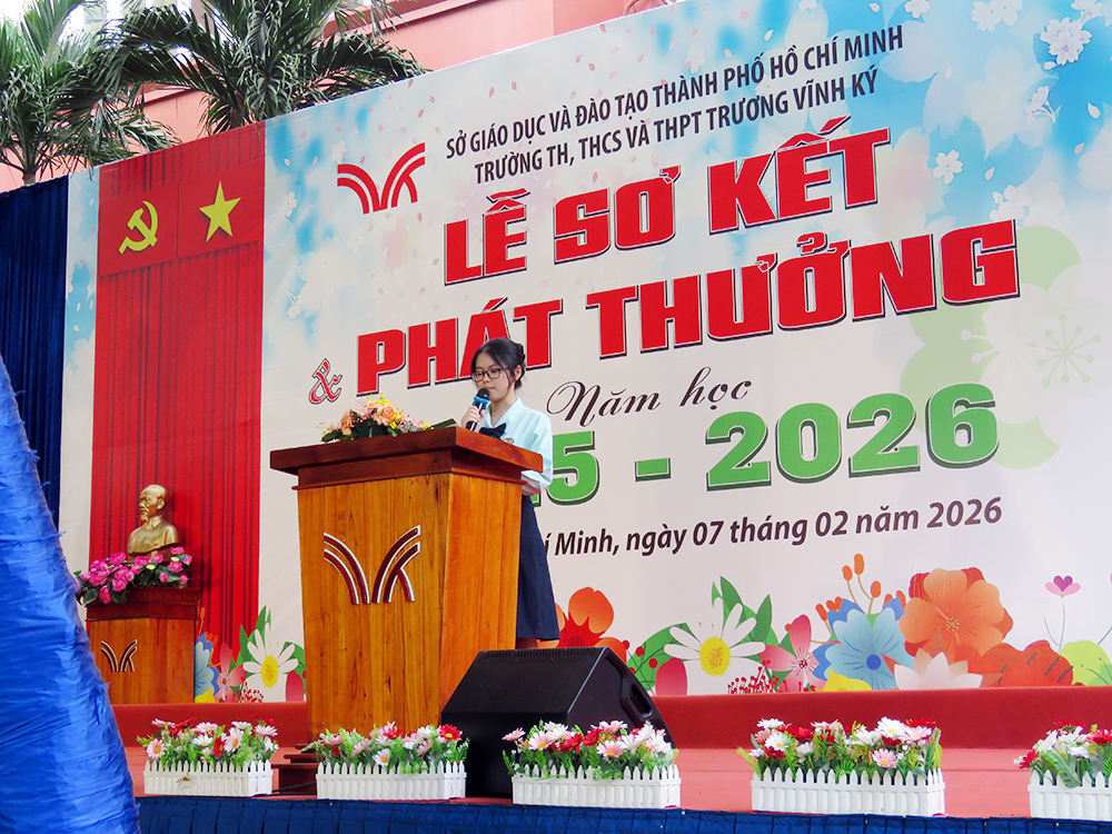 Nhằm sơ kết đánh giá kết quả thực hiện nhiệm vụ giảng dạy, giáo dục học sinh trong HK1, ghi nhận, biểu dương những học sinh đạt thành tích xuất sắc trong học tập, rèn luyện và các phong trào thi đua, tạo động lực phấn đấu cho CB - GV - NV, học sinh trong HK2, định hướng nhiệm vụ trọng tâm HK2, vào lúc 7 giờ 30 thứ Bảy, 07 tháng 02 năm 2026, trường TH, THCS và THPT Trương Vĩnh Ký long trọng tổ chức Lễ Sơ kết Học kỳ I, năm học 2025 - 2026 tại cơ sở Trịnh Đình Trọng, thành phố Hồ Chí Minh.