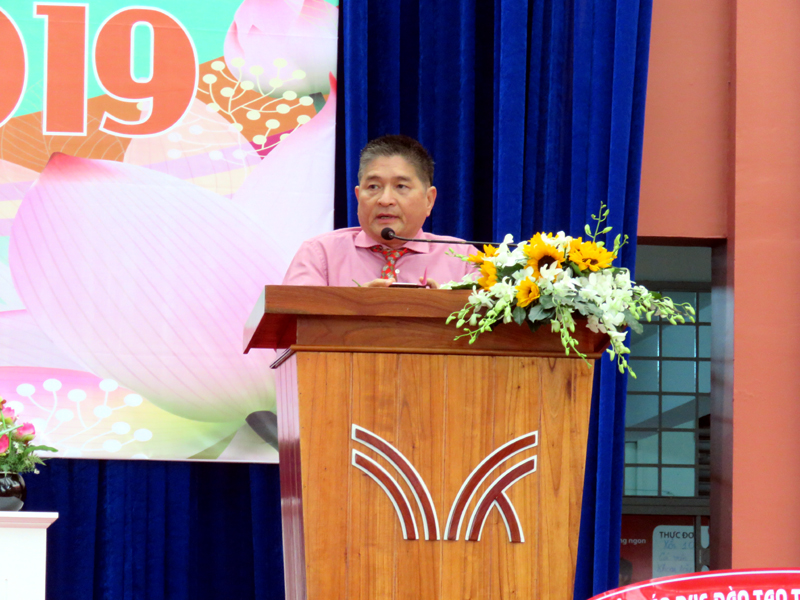 Thầy Trần Văn Hiếu - Chủ tịch HĐQT nhà trường phát biểu chào mừng và chúc Tết