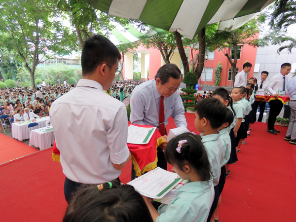 Khai mạc buổi Lễ, thầy Chủ tịch Hội đồng Quản trị - Trần Văn Hiếu phát biểu khai mạc, thầy Hiệu trưởng Phan Văn Thanh đã Báo cáo tóm tắt các hoạt động, thành tích của nhà trường năm học 2017 – 2018 và đưa ra biện pháp, phương hướng trong năm học mới đồng thời công nhận hoàn thành chương trình bậc Tiểu học cho các em học sinh khối lớp 5 và tuyên dương khen thưởng những thầy cô, học sinh có thành tích cao trong năm học...