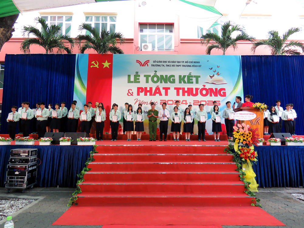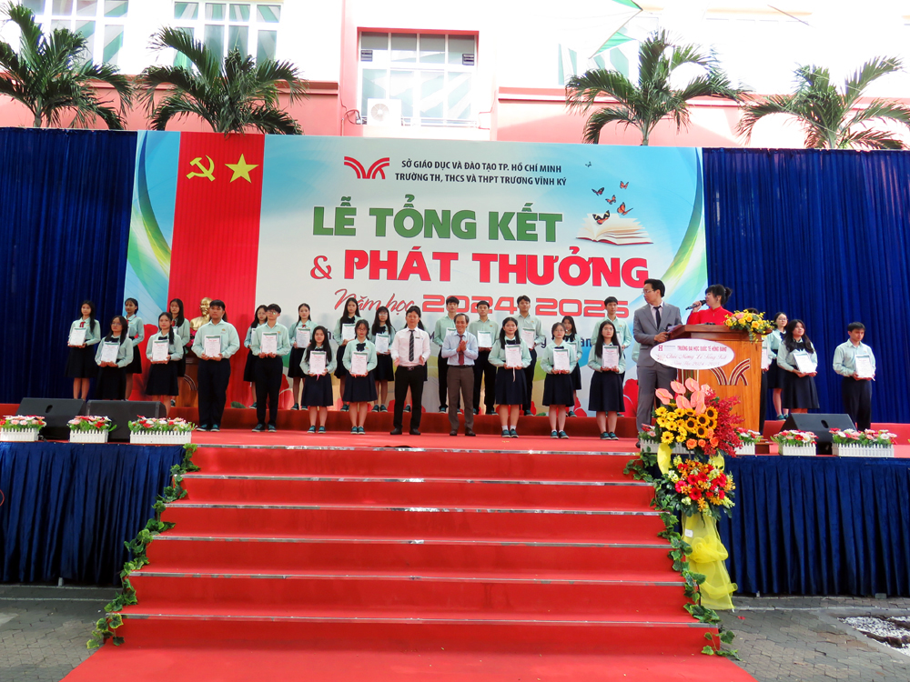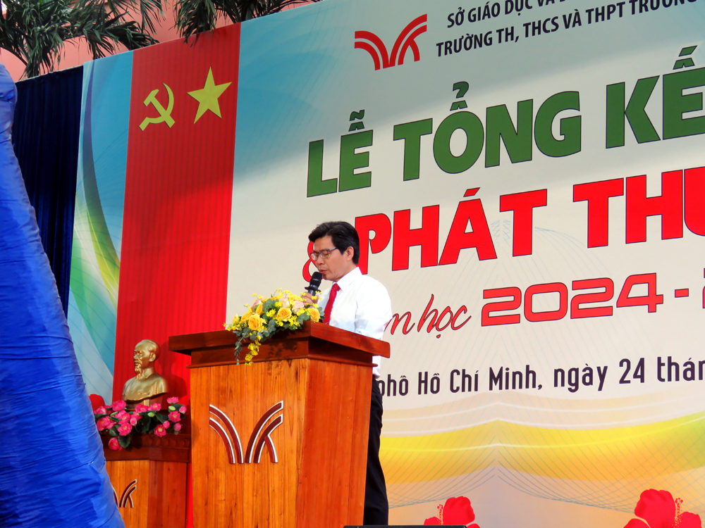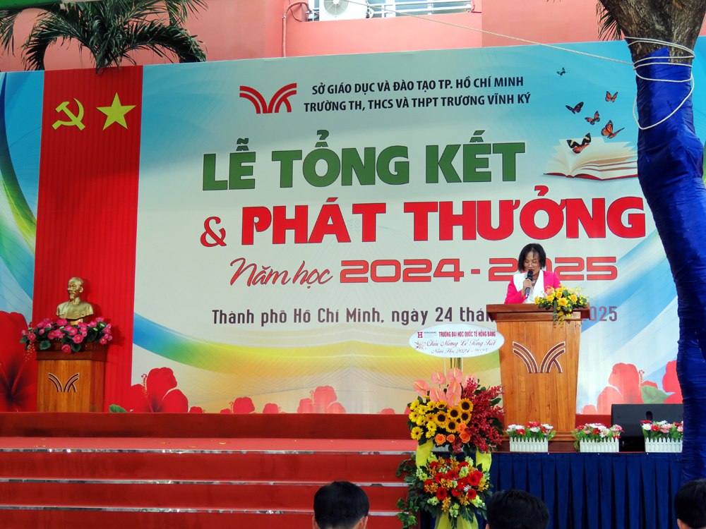 Mở đầu Lễ Tổng kết, thầy Phan Văn Thanh - Hiệu trưởng nhà trường đã báo cáo tóm tắt hoạt động, thành tích năm học 2024 - 2025. Sau phần phát biểu chỉ đạo của ông Huỳnh Kim Tuấn - Ủy viên Ban Thường vụ Quận ủy, Phó Chủ tịch Ủy Ban nhân dân Quận 11 là lời phát biểu cảm nghĩ của quý đại diện cha mẹ học sinh - những bậc cha mẹ đã luôn đồng hành cùng thầy cô giáo trường Trương Vĩnh Ký trên mỗi hoạt động giáo dục và học sinh lớp 12A16 - đại diện cho các bạn học sinh trường Trương Vĩnh Ký.