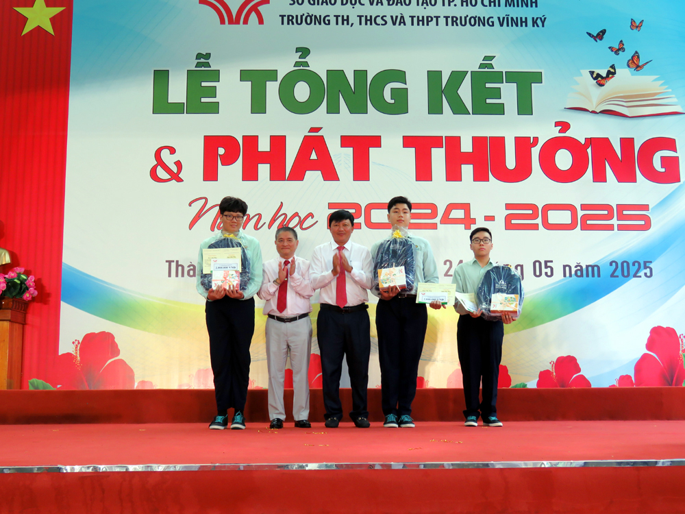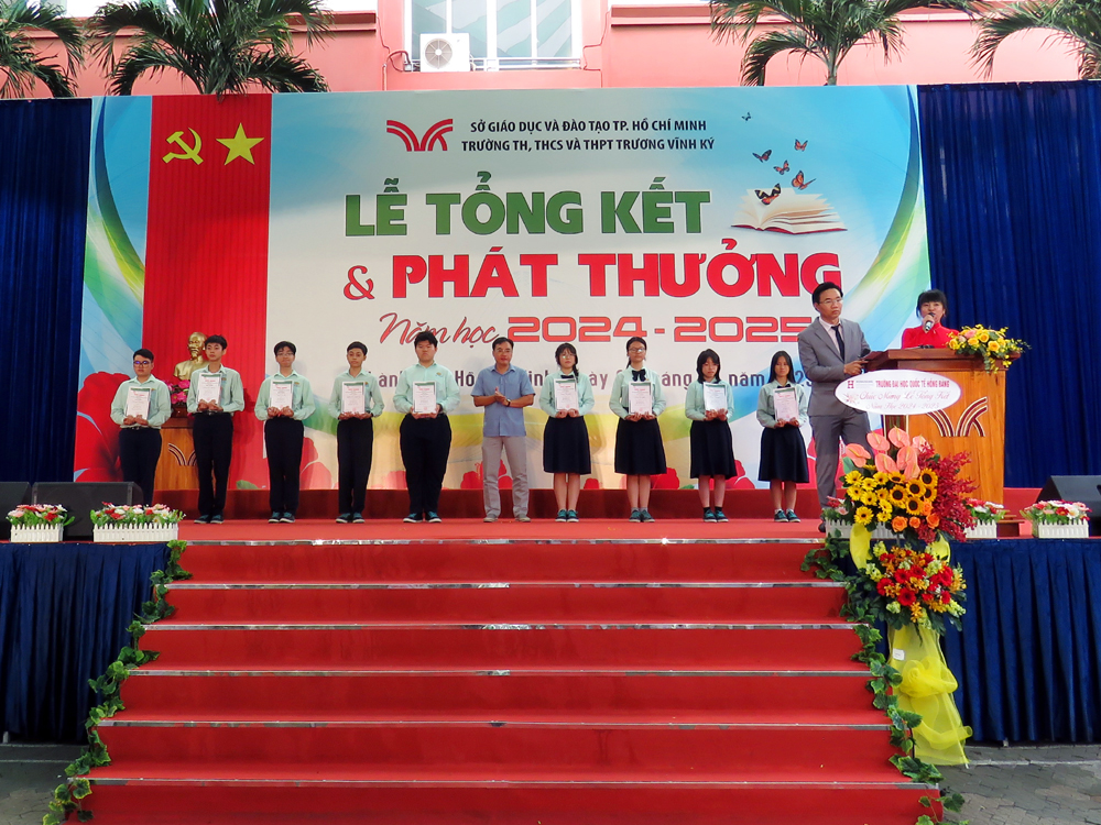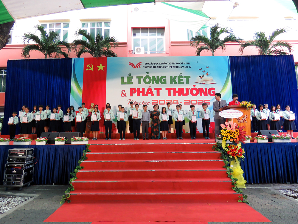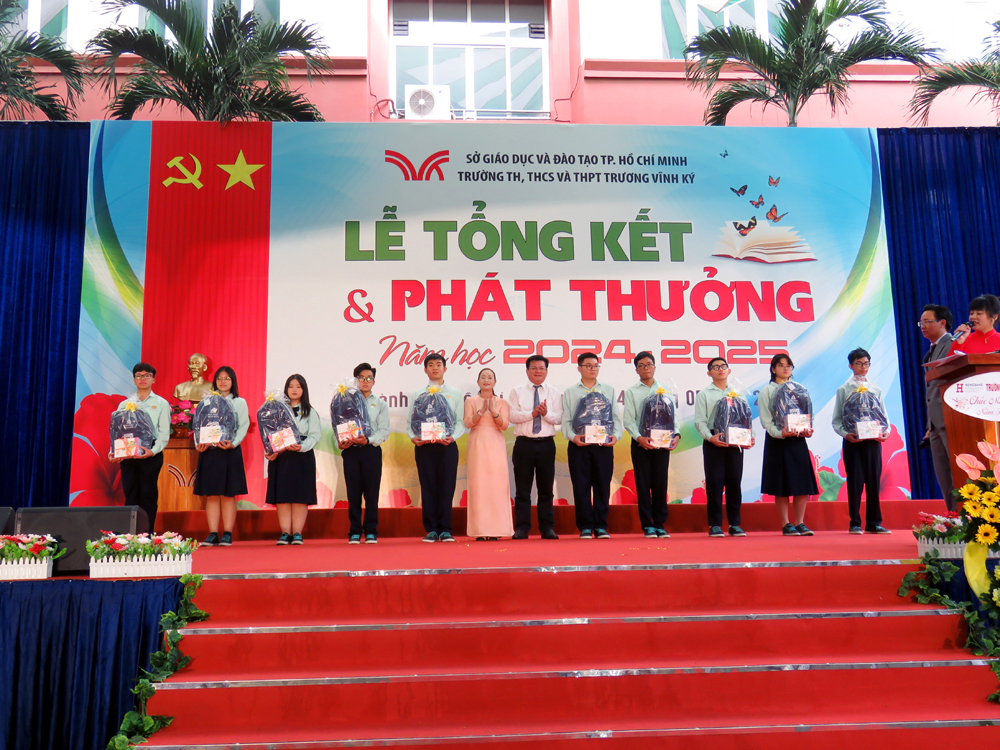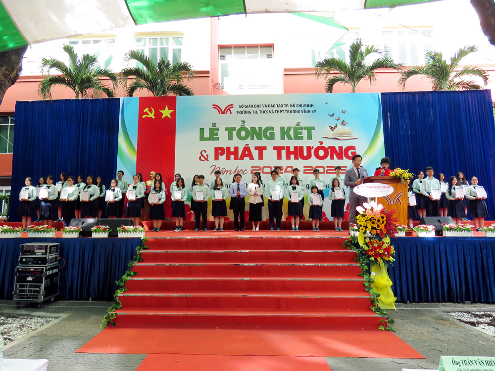 Mở đầu Lễ Tổng kết, thầy Phan Văn Thanh - Hiệu trưởng nhà trường đã báo cáo tóm tắt hoạt động, thành tích năm học 2024 - 2025. Sau phần phát biểu chỉ đạo của ông Huỳnh Kim Tuấn - Ủy viên Ban Thường vụ Quận ủy, Phó Chủ tịch Ủy Ban nhân dân Quận 11 là lời phát biểu cảm nghĩ của quý đại diện cha mẹ học sinh - những bậc cha mẹ đã luôn đồng hành cùng thầy cô giáo trường Trương Vĩnh Ký trên mỗi hoạt động giáo dục và học sinh lớp 12A16 - đại diện cho các bạn học sinh trường Trương Vĩnh Ký.