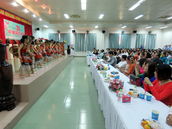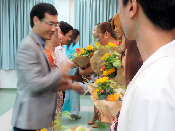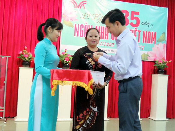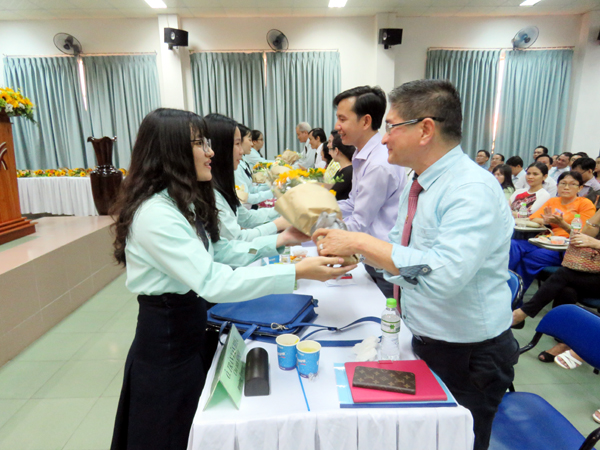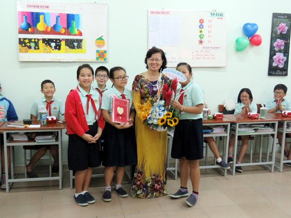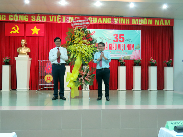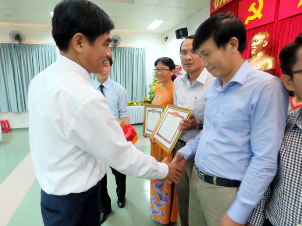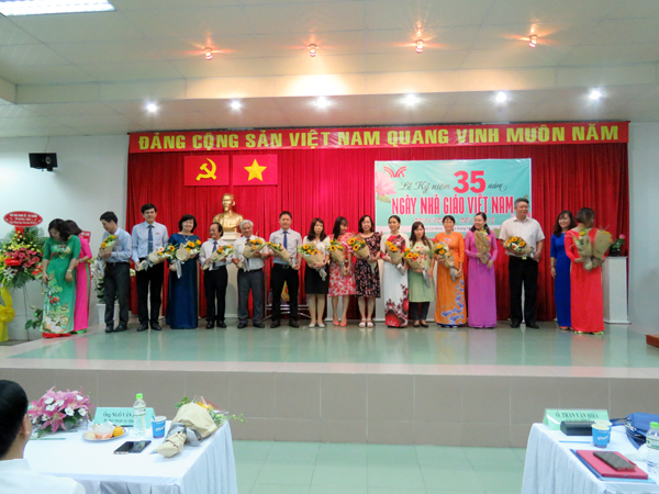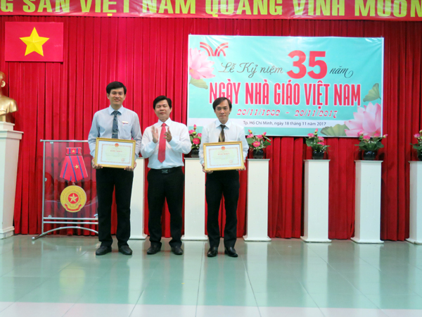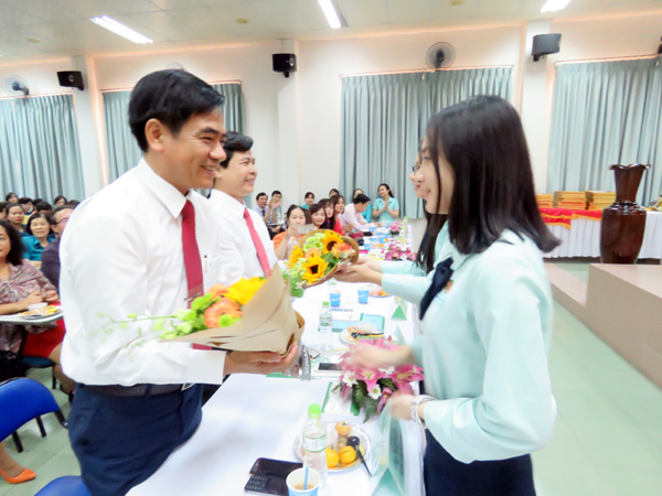 Ông Ngô Văn Luận - Bí thư Quận Ủy Quận 11 tặng hoa chúc mừng cho Lãnh đạo trường