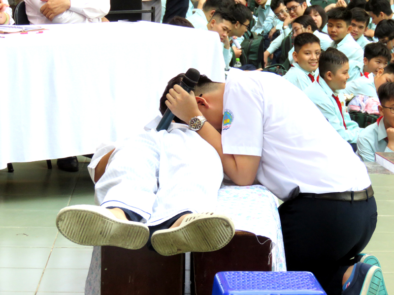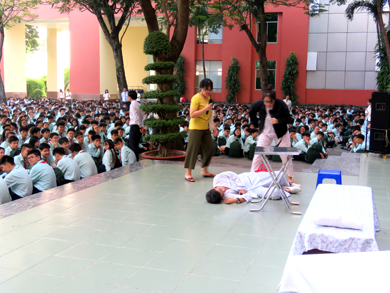 Tiểu phẩm về "Tác hại của thuốc lá" do học sinh lớp 10A1 thực hiện.