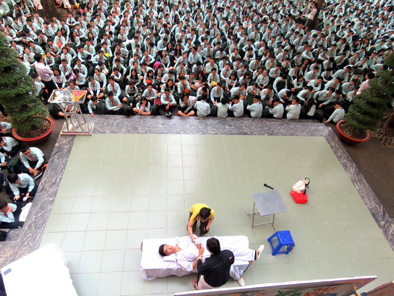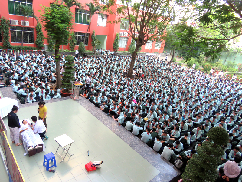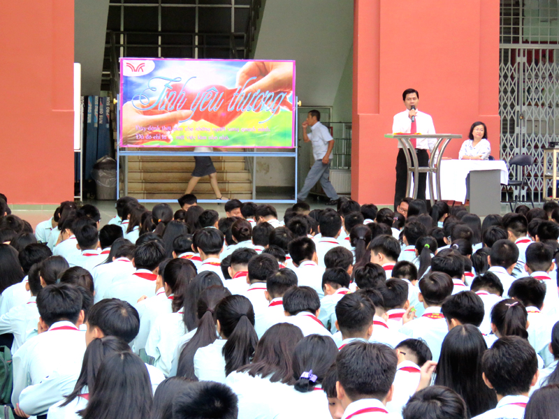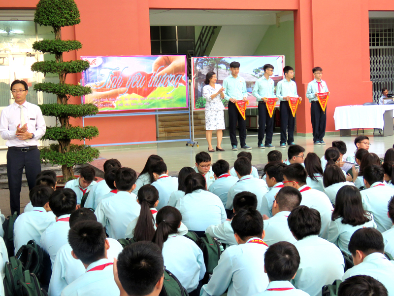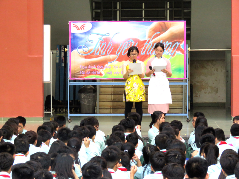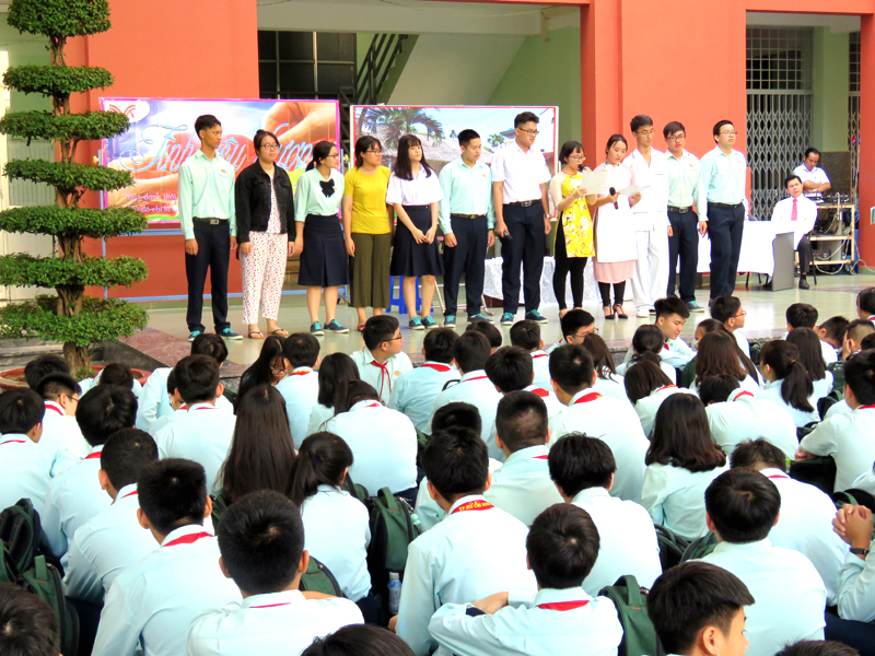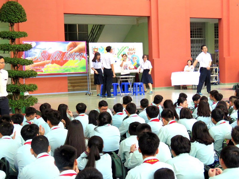 Vào lúc 7g00 ngày thứ hai 22/10/2018. Tại cơ sở TĐT nhà trường đã tổ chức buổi sinh hoạt Ngoài giờ lên lớp với chủ đề “Tình yêu thương” do các em lớp 12A16 thực hiện. Nội dung của chương trình là tiết mục văn nghệ , kế tiếp là tiểu phẩm về Tình cảm gia đình.