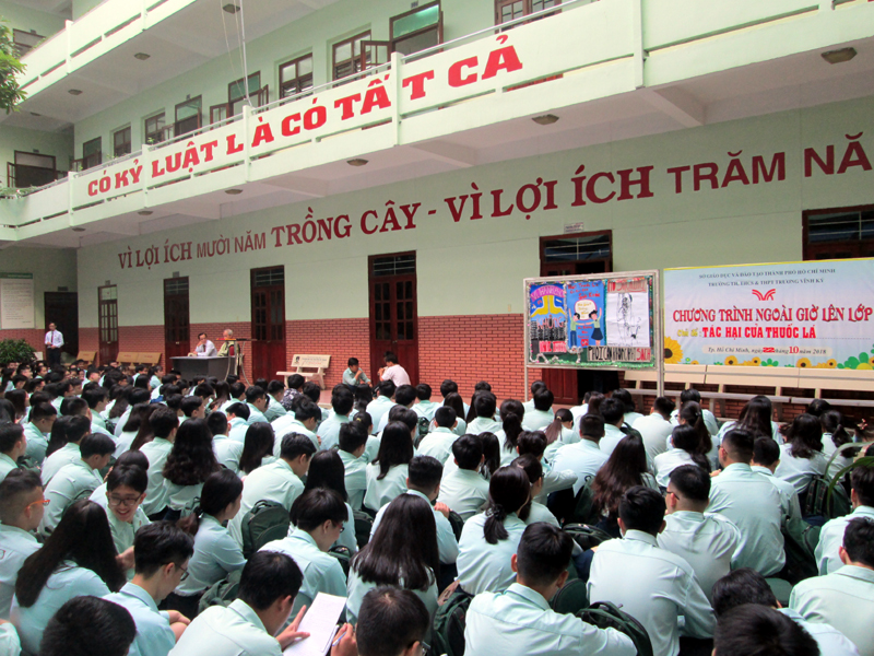 Cùng thời gian trên, tại cở sở BVT các em học sinh lớp 10A1 cũng thực hiện chuyên đề về “Tác hại của thuốc lá”.
