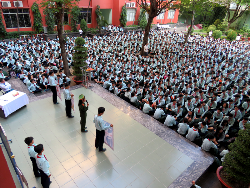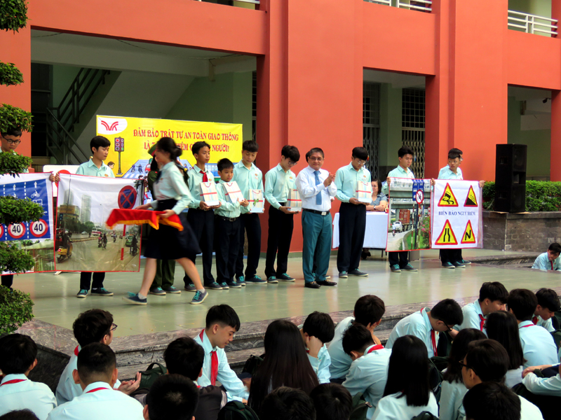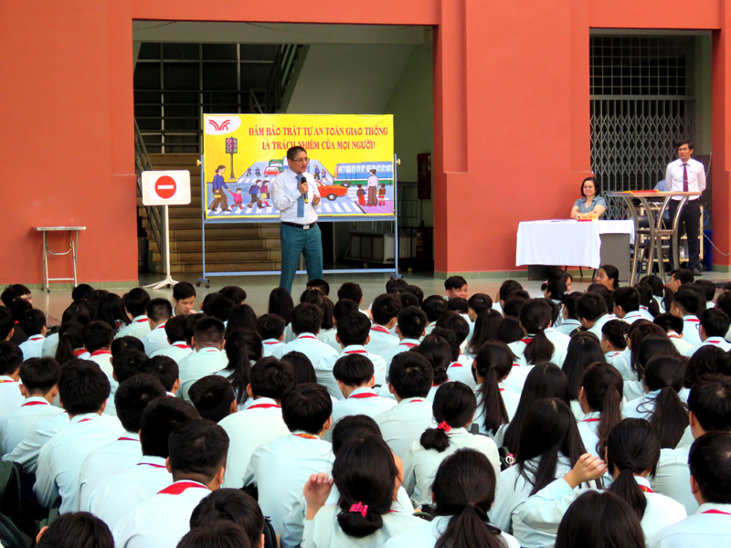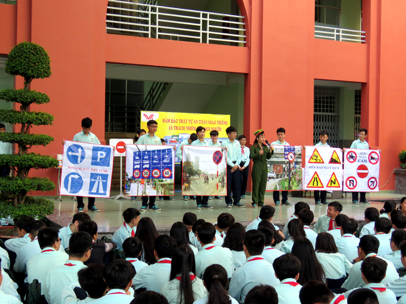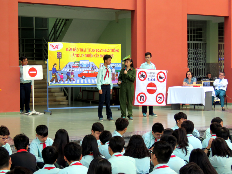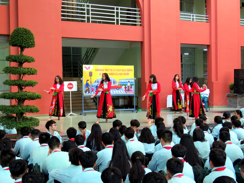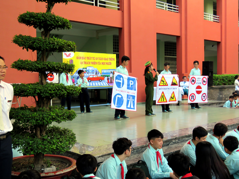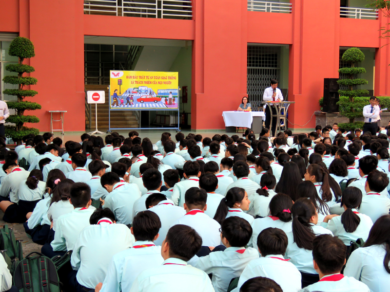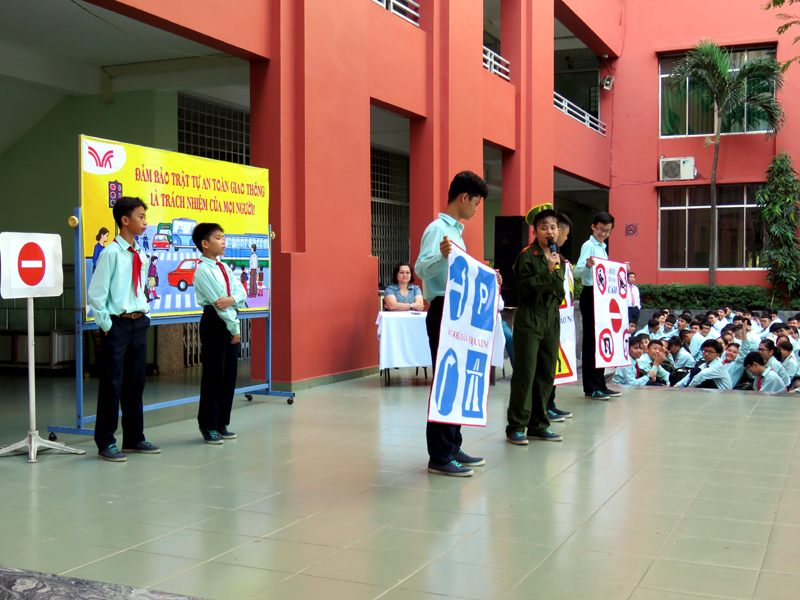 Căn cứ vào kế hoạch năm học 2018 - 2019, vào các kế hoạch tổ chức các hoạt động giáo dục NGLL nhằm phổ biến, chia sẽ, hướng dẫn những vấn đề mang tính thông tin thời sự, cấp thiết và giáo dục về tư tưởng, đạo đức, kỹ năng sống cho các em học sinh, hưởng ứng tháng “ An toàn giao thông quốc gia”, đồng thời giúp các em học sinh chấp hành luật giao thông nghiêm túc, ý thức bảo vệ an toàn cho mình và người sử dụng phương tiện giao thông, sáng thứ hai, ngày 01/04/2019, trường TH, THCS và THPT Trương Vĩnh Ký tổ chức hoạt động ngoài giờ lên lớp với chủ đề “An toàn giao thông”.