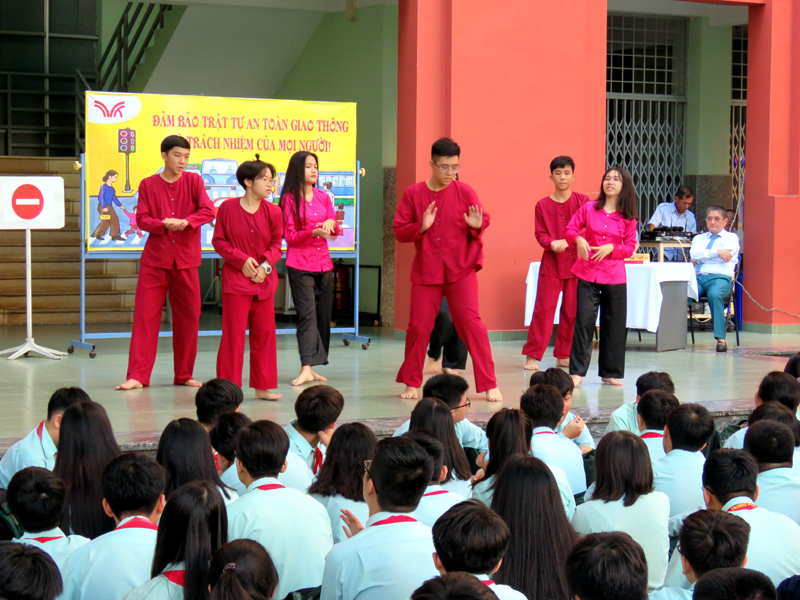Ngoài ra,hoạt động thêm phần sối nổi với phần tiểu phẩm của học sinh lớp 10A4 và 10A28. Xen kẽ tiết mục văn nghệ, và thuyếtt trình về luật an toàn giao thông. Qua buổi sinh hoạt, các em học sinh rút ra được bài học bổ ích và thiết thực cho bản thân mình và mọi người khi tham gia giao thông một cách an toàn và có văn hóa....