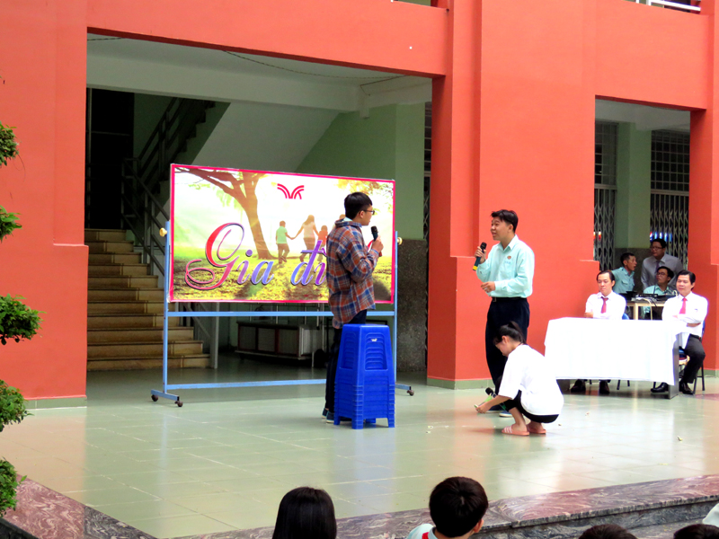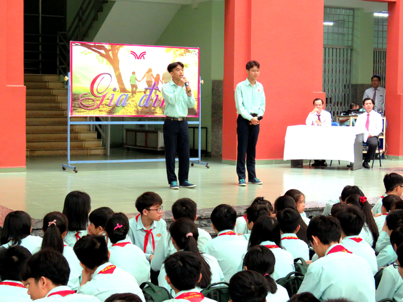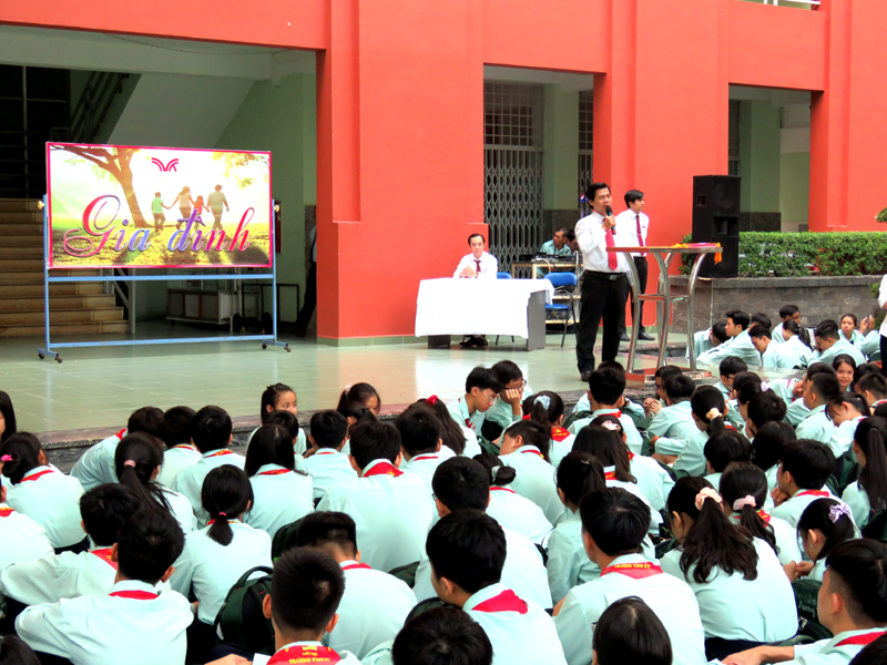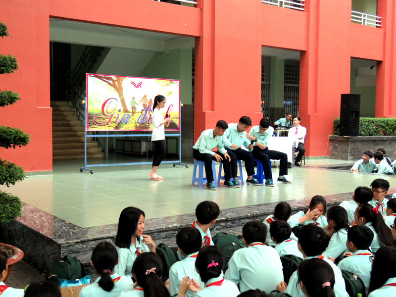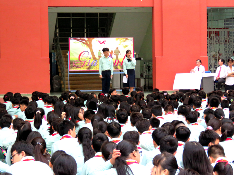 Vào lúc 7g00 ngày thứ hai 30/12/2019. Tại cơ sở TĐT nhà trường đã tổ chức buổi sinh hoạt Ngoài giờ lên lớp với chủ đề “Gia đình” do các em lớp ….. thực hiện. Nội dung của chương trình là tiết mục văn nghệ , kế tiếp là tiểu phẩm về Tình cảm gia đình.