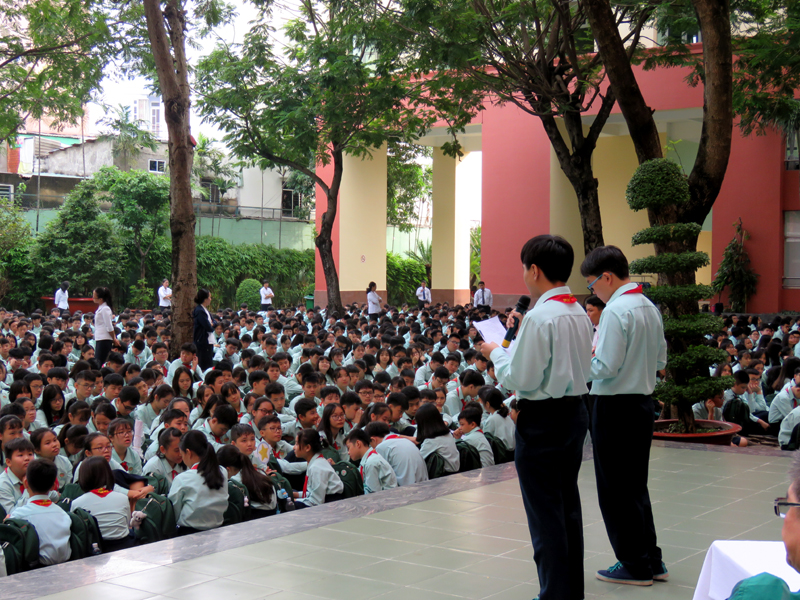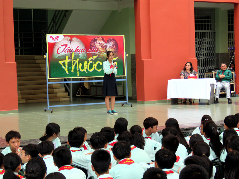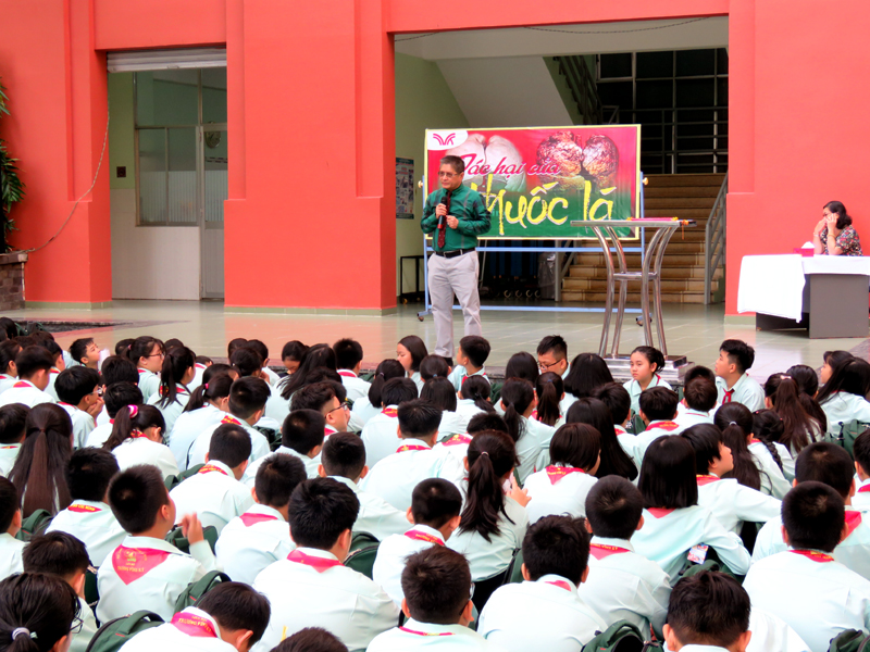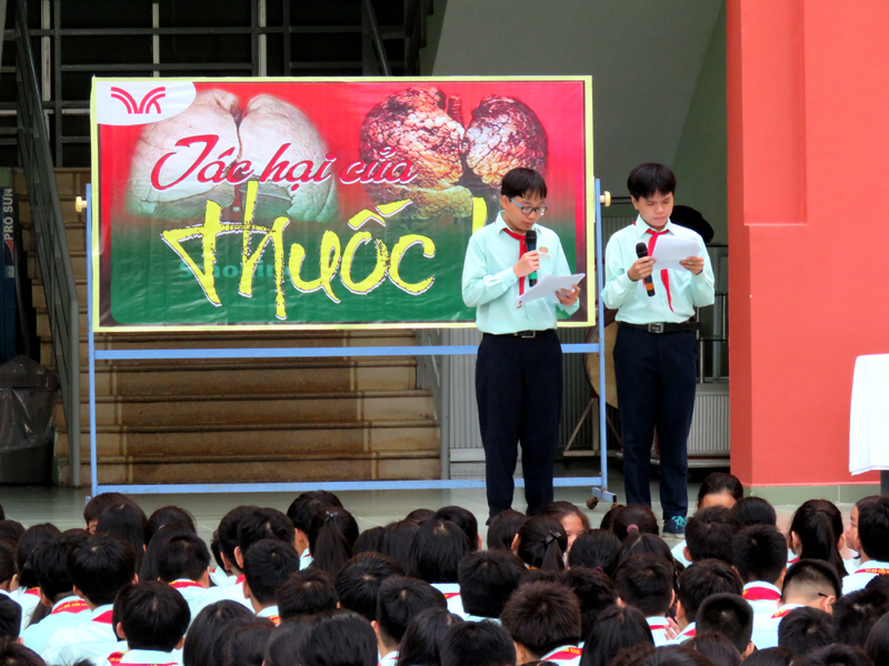 Vào lúc 7g00 ngày thứ hai 09/09/2019. BLĐ nhà trường đã chỉ đạo thực hiện chương trình Ngoài giờ lên lớp với chủ đề “TÁC HẠI CỦA THUỐC LÁ" tại 2 cơ sở.
