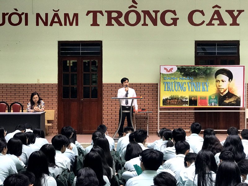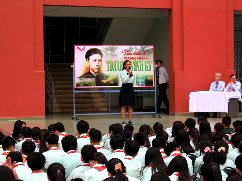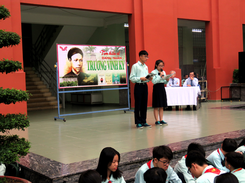 Vào lúc 7g00, thứ hai ngày 25/11/2019. BLĐ nhà trường đã chỉ đạo thực hiện chương trình Ngoài giờ lên lớp với chủ đề “TÌM HIỂU DANH NHÂN TRƯƠNG VĨNH KÝ”.