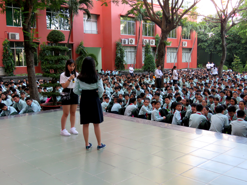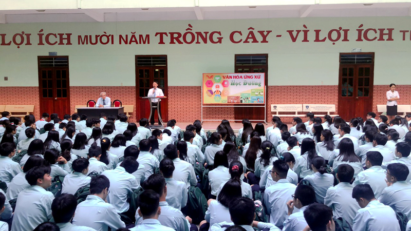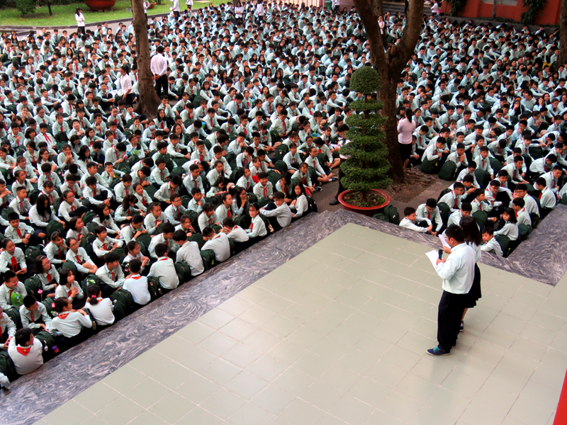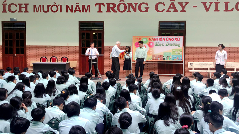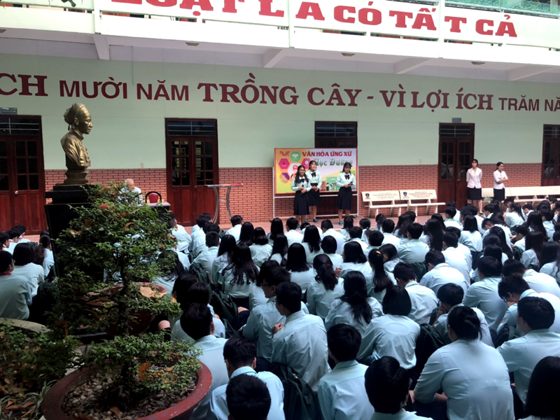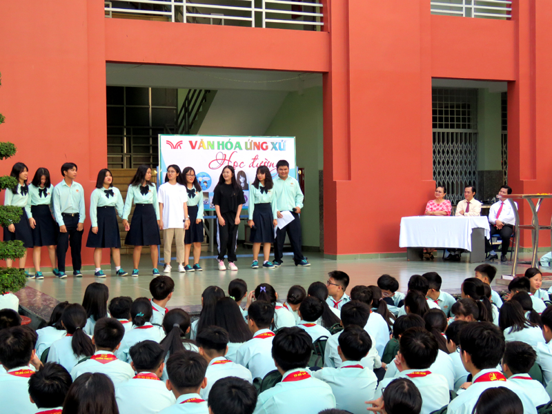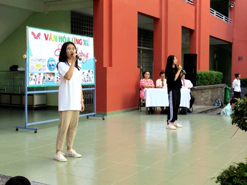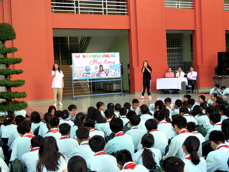 Vào lúc 7g00, thứ hai ngày 21/10/2019 tại 2 cơ sở. BLĐ nhà trường đã chỉ đạo thực hiện chương trình Ngoài giờ lên lớp với chủ đề “Văn hóa ứng xử học đường”.