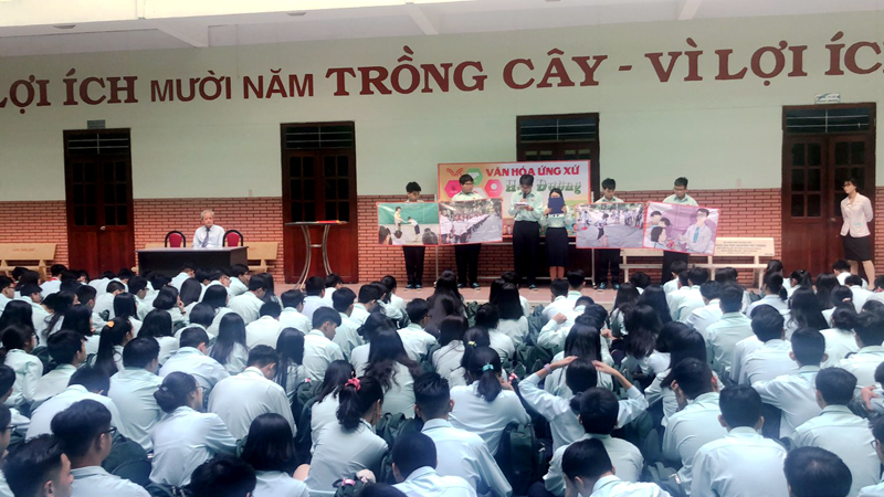Buổi chuyên đề là tiết mục văn nghệ, tiểu phẩm của học sinh các lớp 10A3 tại cơ sở BVT và 10A4 và 10A16 Với thông điệp sống có trách nhiệm, ứng xử phù hợp trong gia đình cũng như xã hội …