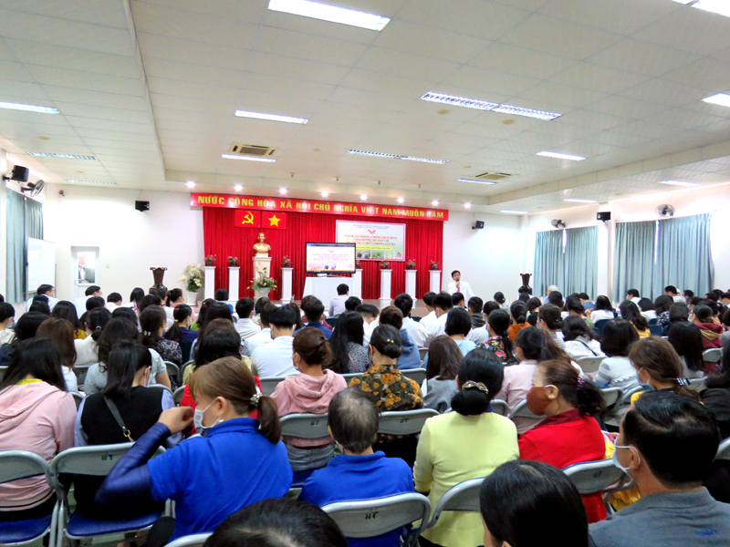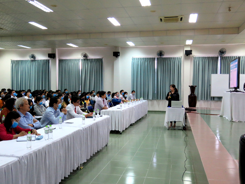 Bác sỹ Bùi Thị Thanh Hải – Trưởng Trạm Y tế - Phường 5 – Quận 11 thuyết trình trong buổi tập huấn