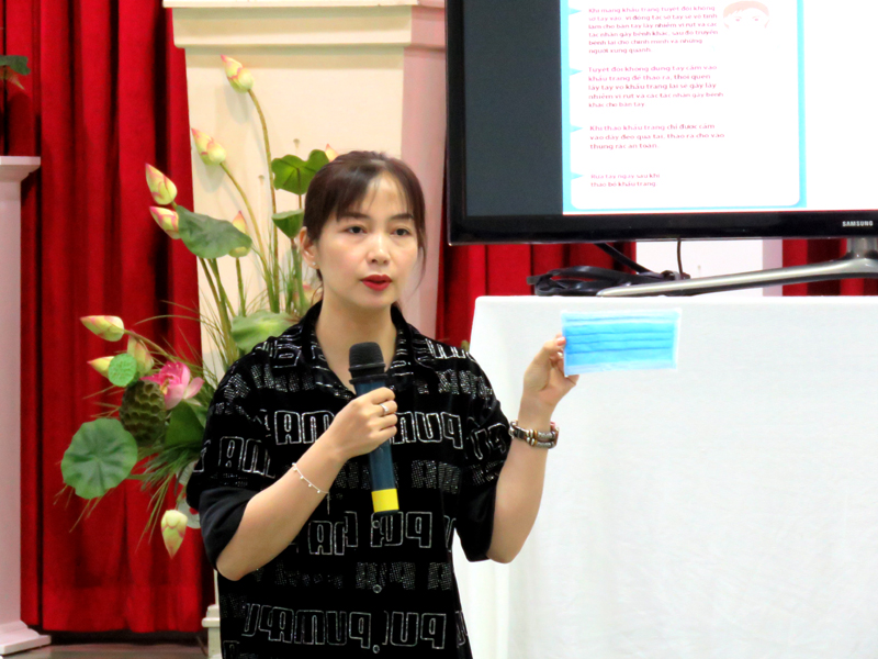 Trong buổi tập huấn, Bác sỹ Bùi Thị Thanh Hải – Trưởng Trạm Y tế - Phường 5 – Quận 11 đã cung cấp những thông tin bổ ích trong việc phòng chống dịch viêm đường hô hấp cấp do chủng mới của vi rút Corona gây ra đồng thời hướng dẫn sử dụng khẩu trang đúng cách và các bước rửa tay đúng quy trình và hiệu quả…