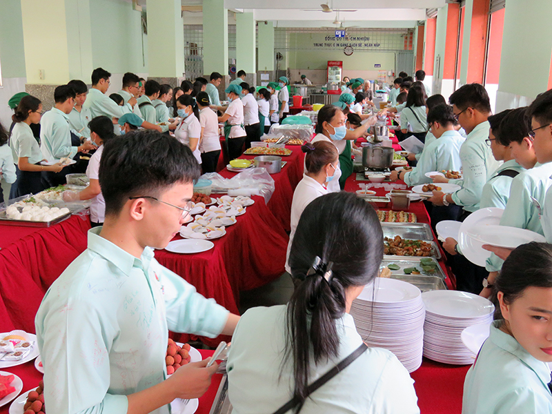 Sau khi nghe phổ biến các hội đồng thi và sinh hoạt với GVCN tại lớp, các em học sinh khối 12 cùng tham gia buổi tiệc buffet với thầy cô trong Hội đồng sư phạm nhà trường.