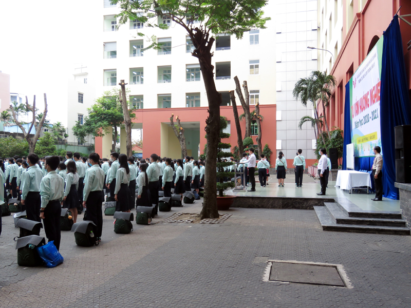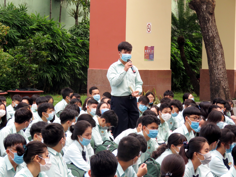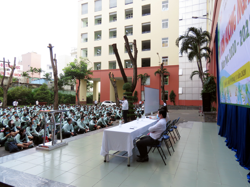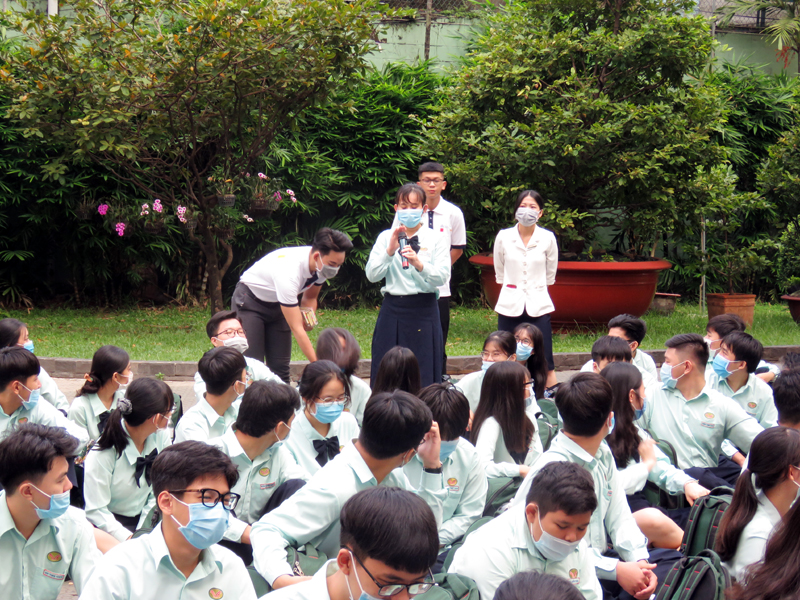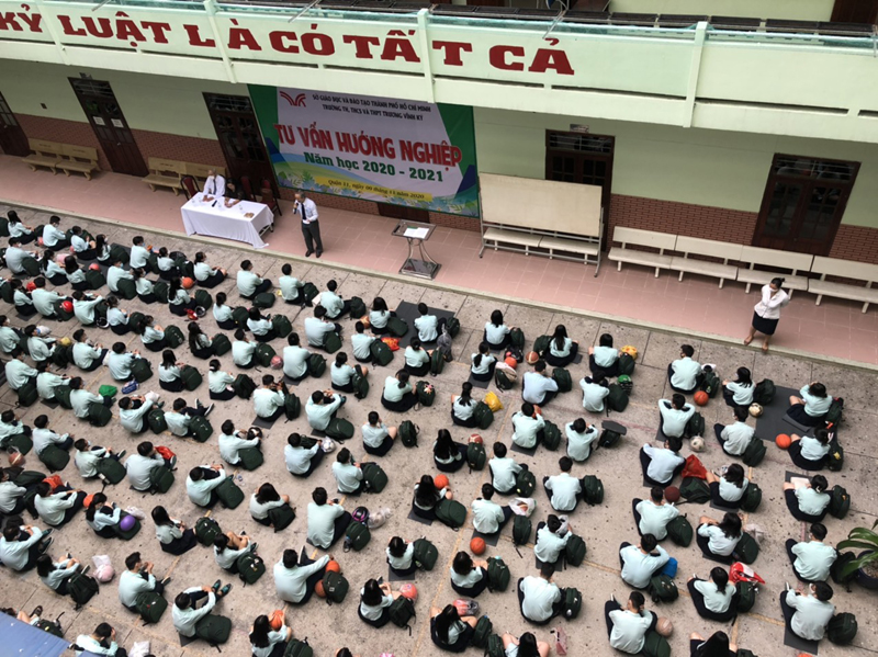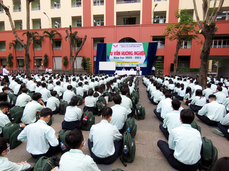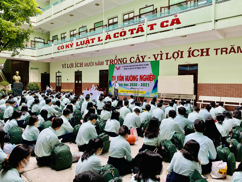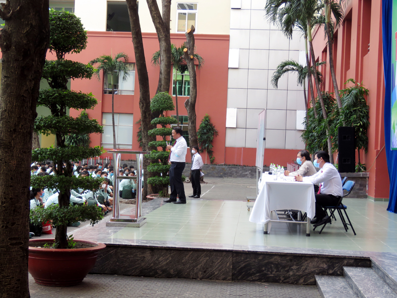 Sau phần phát biểu khai mạc của thầy Phan Văn Thanh – Hiệu trưởng trường Trương Vĩnh Ký là phần tư vấn về những vấn đề hướng nghiệp chọn ngành chọn nghề. Các em học sinh được nghe những vấn đề liên quan đến việc chọn ngành – nghề và định hướng vào các trường Đại học và Cao Đẳng năm 2021.