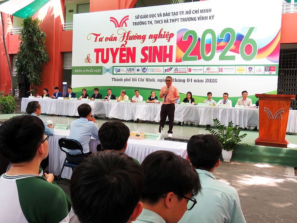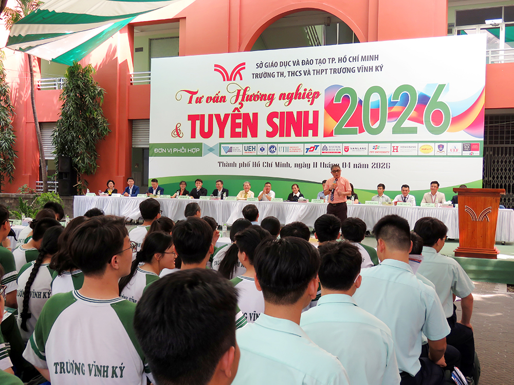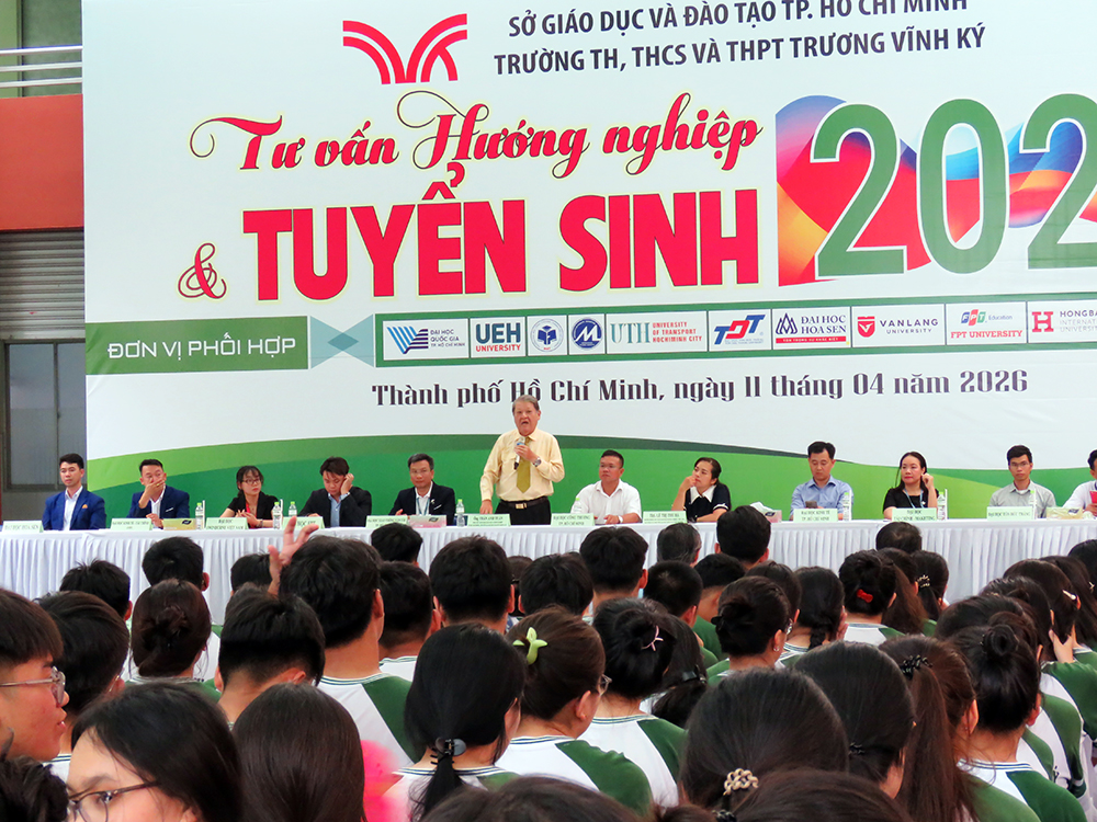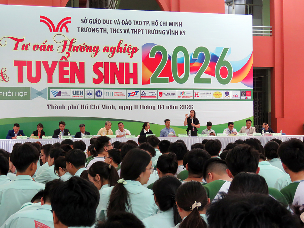 Dòng chảy của công nghệ tiên tiến và khoa học kỹ thuật hiện đại cuốn theo những ngành nghề, công việc tương lai yêu cầu phải đáp ứng trình độ và phù hợp với các công dân trẻ tuổi. “Ngày Hội Tư vấn Hướng nghiệp và Tuyển sinh năm 2026” do trường TH, THCS và THPT Trương Vĩnh Ký phối hợp với các trường Đại học tổ chức ngày 11 tháng 04 năm 2026 đã khẳng định tầm quan trọng của việc hướng nghiệp - định hướng tương lai, giúp các em học sinh có cái nhìn rõ ràng hơn về nghề nghiệp, ngành học cũng như con đường vào Đại học phù hợp với năng lực và đam mê của bản thân.