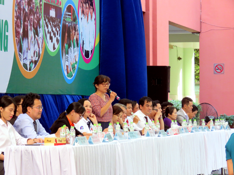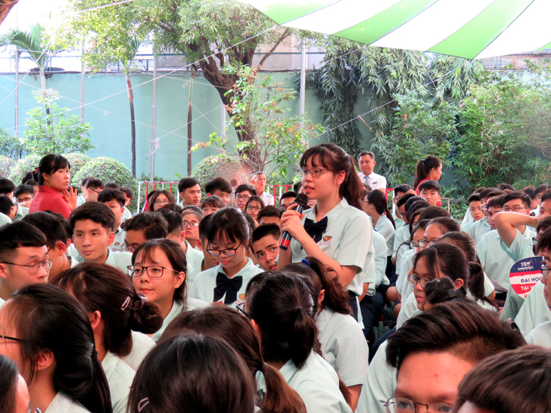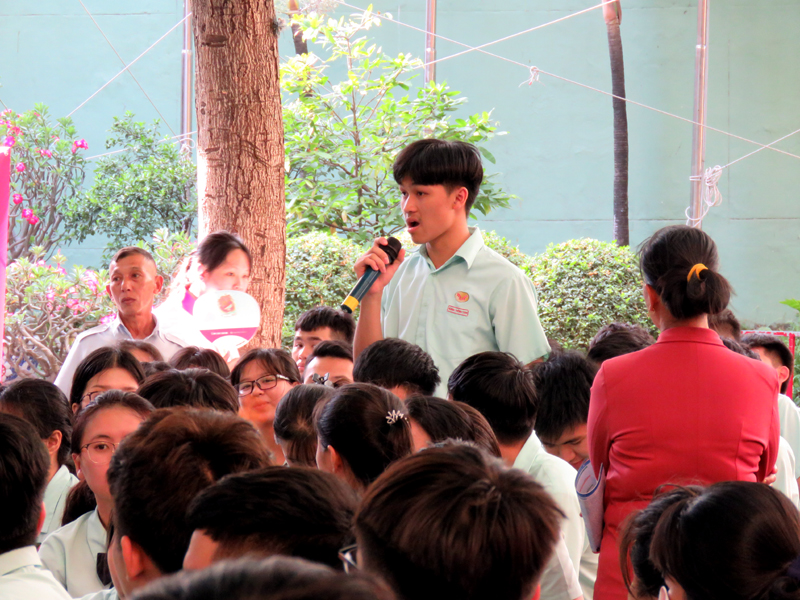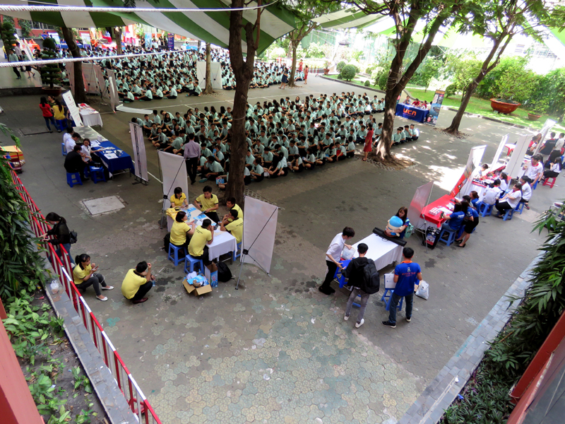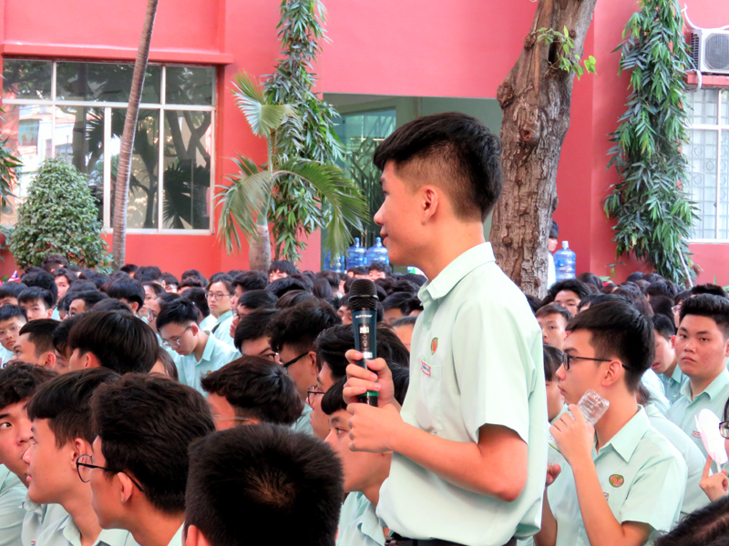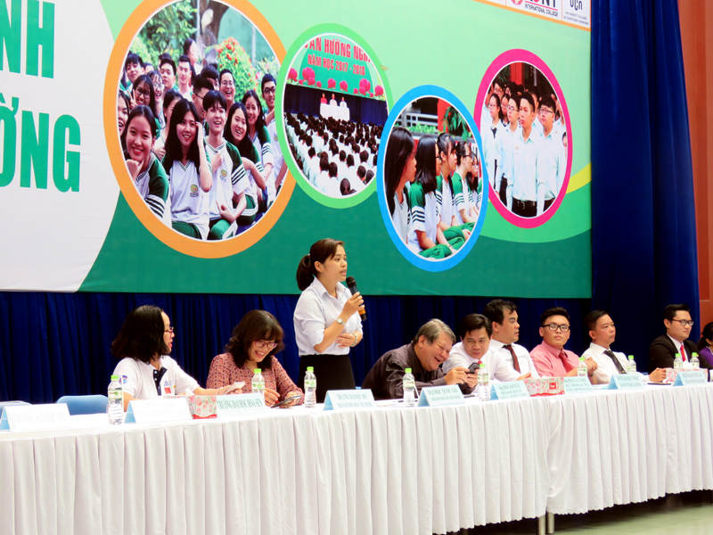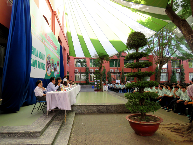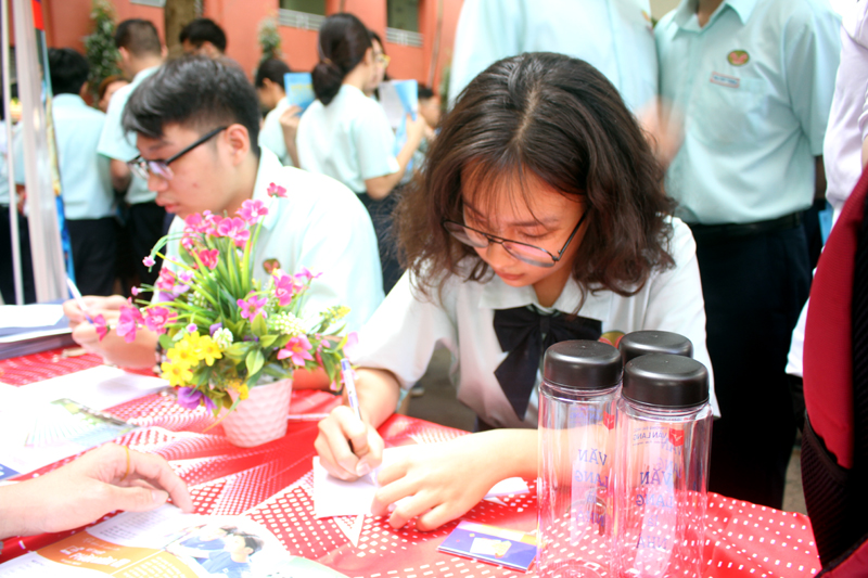 Sau phần phát biểu khai mạc của thầy Phan Văn Thanh – Hiệu trưởng trường Trương Vĩnh Ký là phần tư vấn chung về những vấn đề hướng nghiệp chọn ngành chọn nghề 2019. Các em học sinh được nghe những vấn đề liên quan đến việc chọn ngành – nghề thi vào các trường Đại học và Cao Đẳng năm 2019.