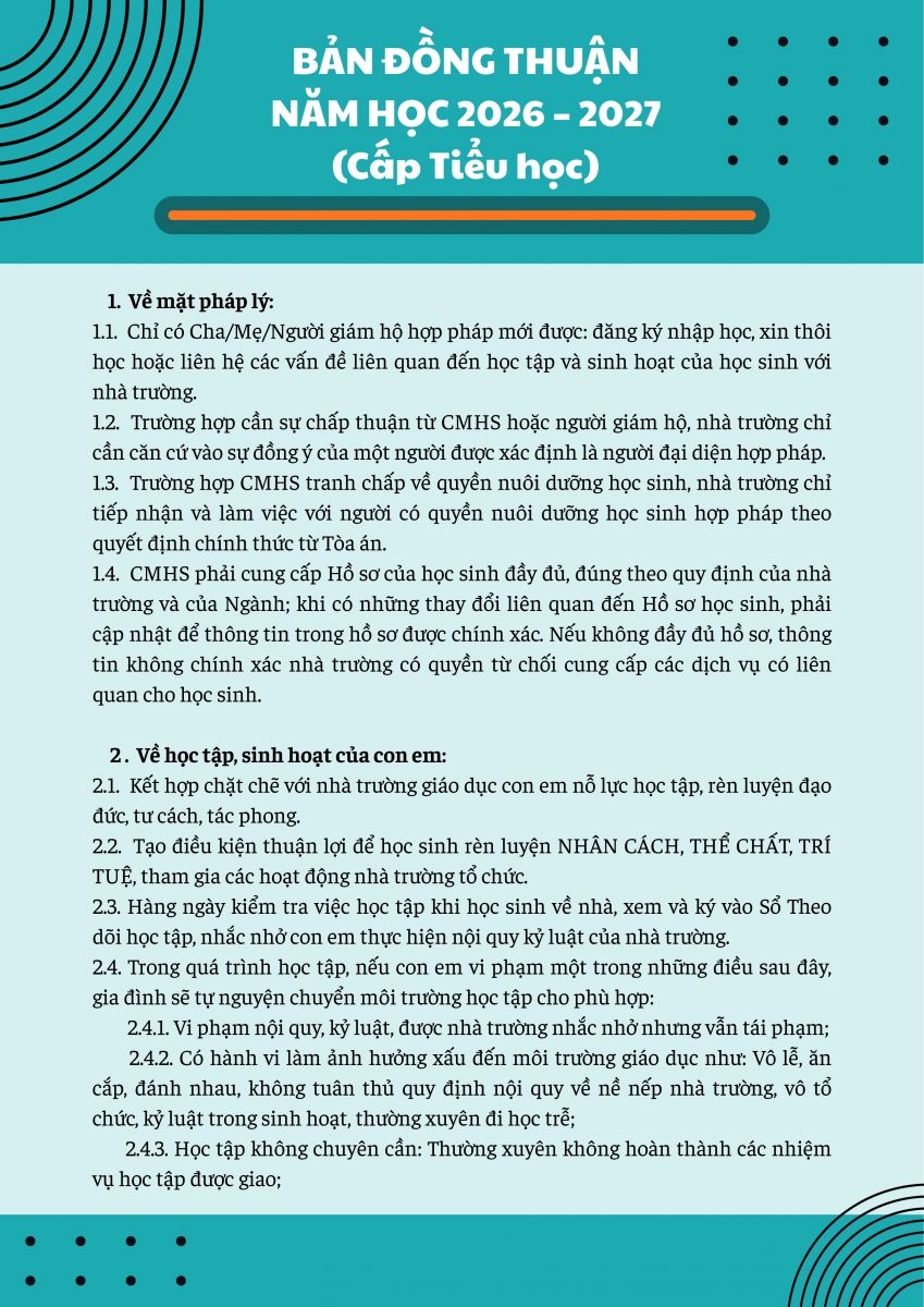 BẢNG ĐỒNG THUẬN CẤP TIỂU HỌC