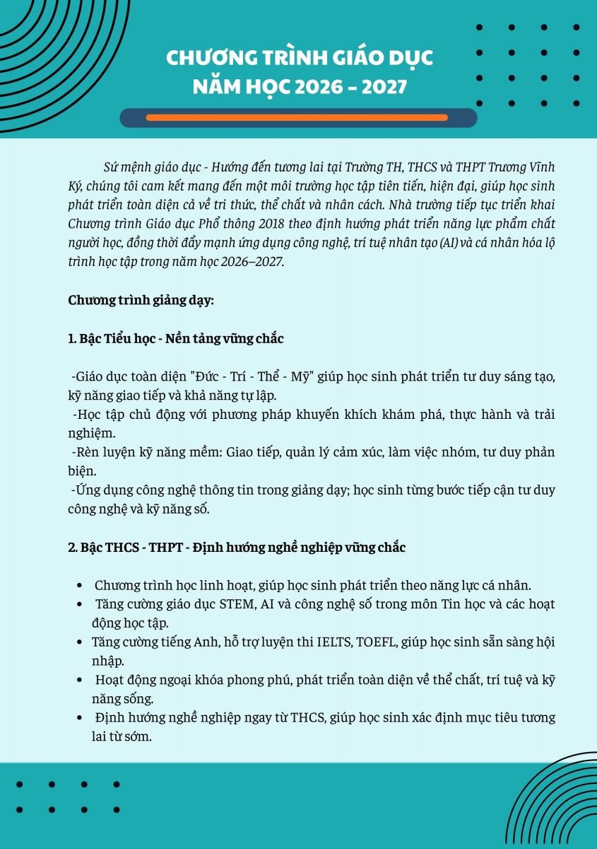 CHƯƠNG TRÌNH GIÁO DỤC NĂM HỌC 2026- 2027