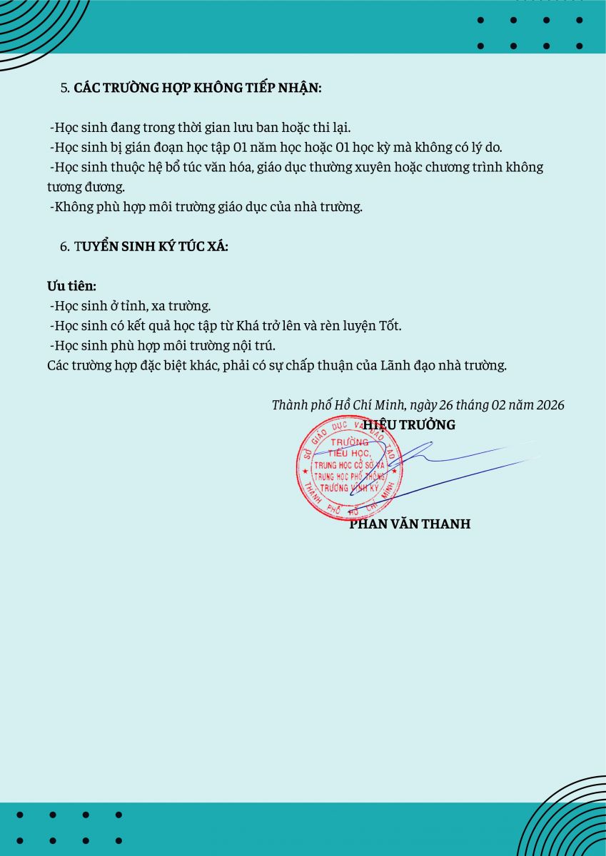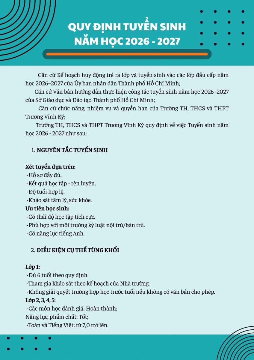 QUY ĐỊNH TUYỂN SINH NĂM HỌC 2026 - 2027
